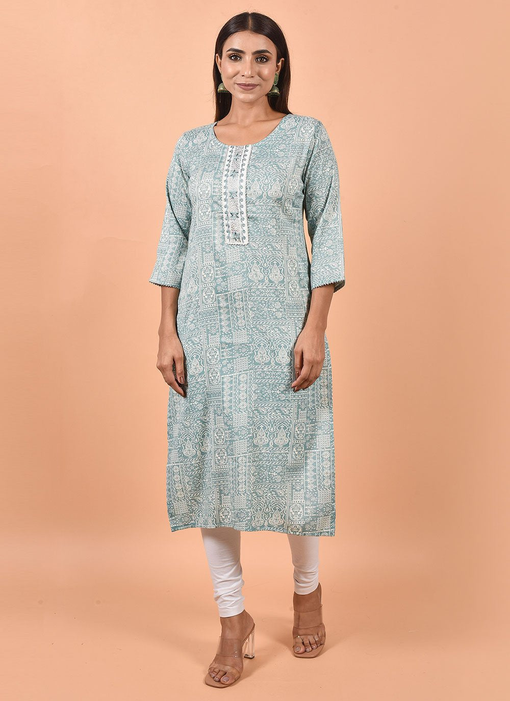 Be ready to slip in the comfort zone of blue cotton designer kurti. Look ravishing clad in such a dress that is enhanced printed work. (Slight variation in color, fabric & work is possible. Model images are only representative.)