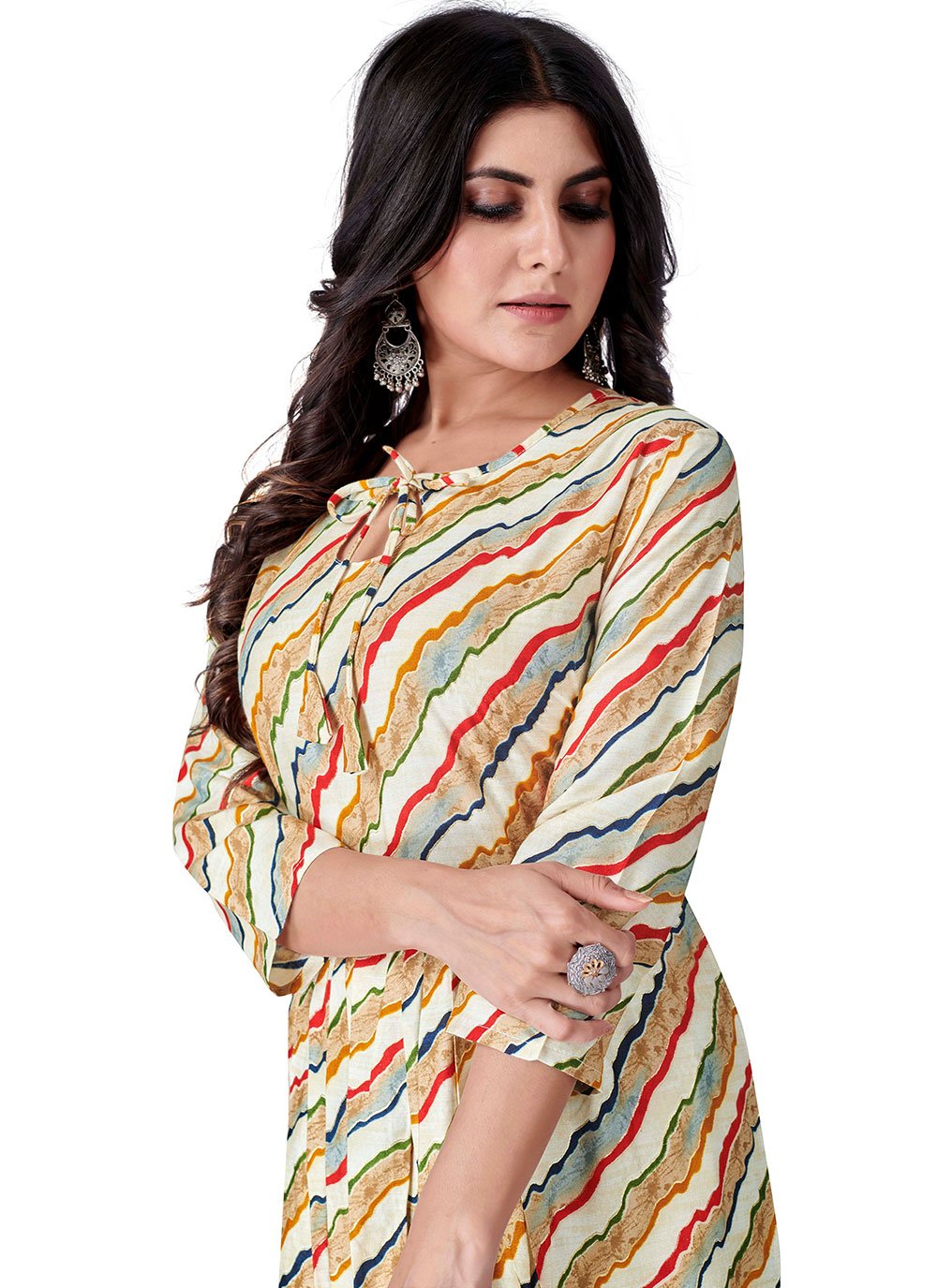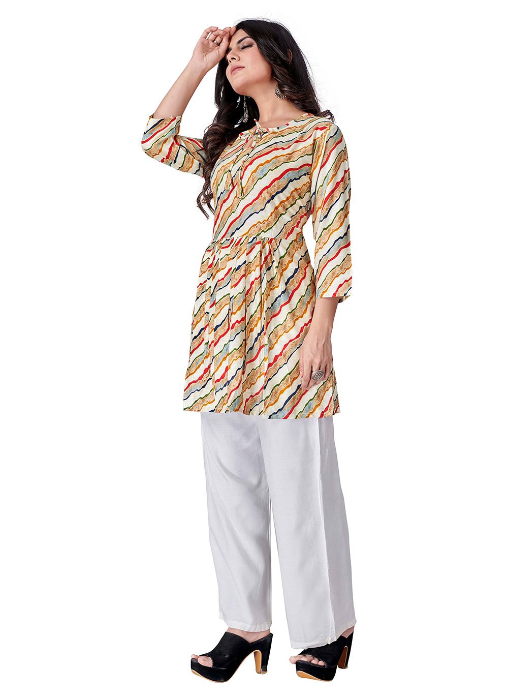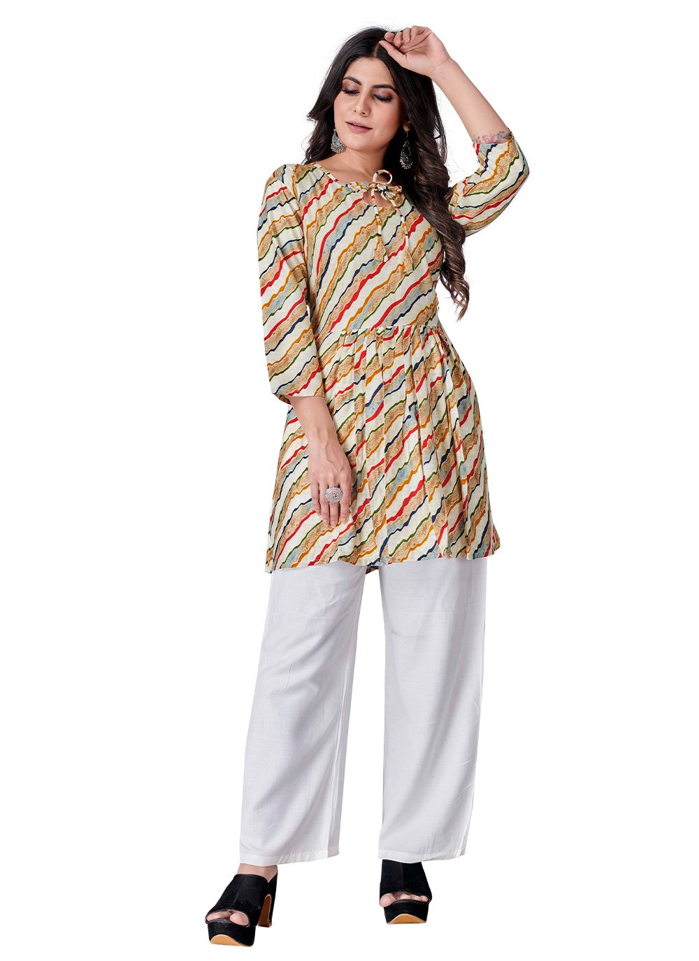 Designer Kurti Cotton Rayon Cream Foil Print Kurtis