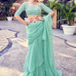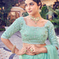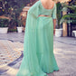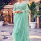 Rich look attire to give your a right choice for any party or function. Be the center of attraction with this sea green organza designer saree. This ravishing attire is amazingly embroidered with dori work, sequins and zari work. Comes with matching blouse. (Slight variation in color, fabric & work is possible. Model images are only representative.)