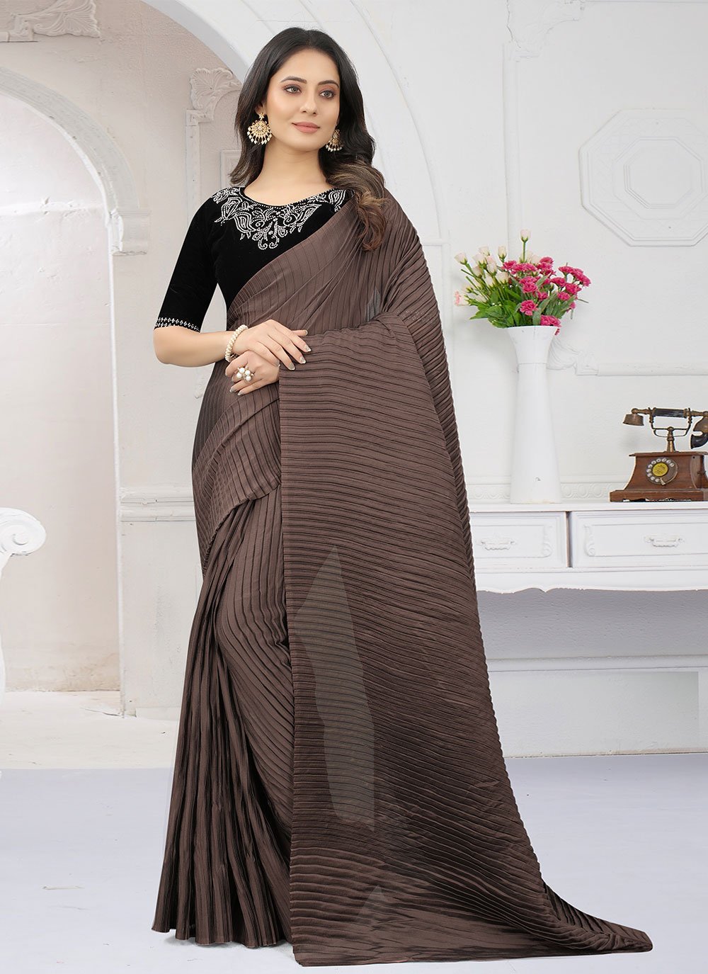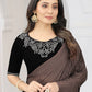 Sensible colors and excellent designs and romantic moods are reflected with an alluring style. Stand out from rest with this brown silk designer saree. This attire is nicely designed with fancy work. Comes with matching blouse. (Slight variation in color, fabric & work is possible. Model images are only representative.)