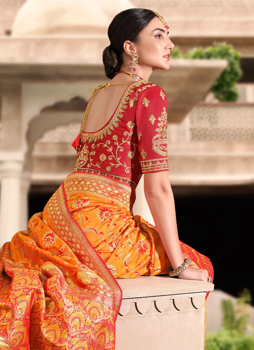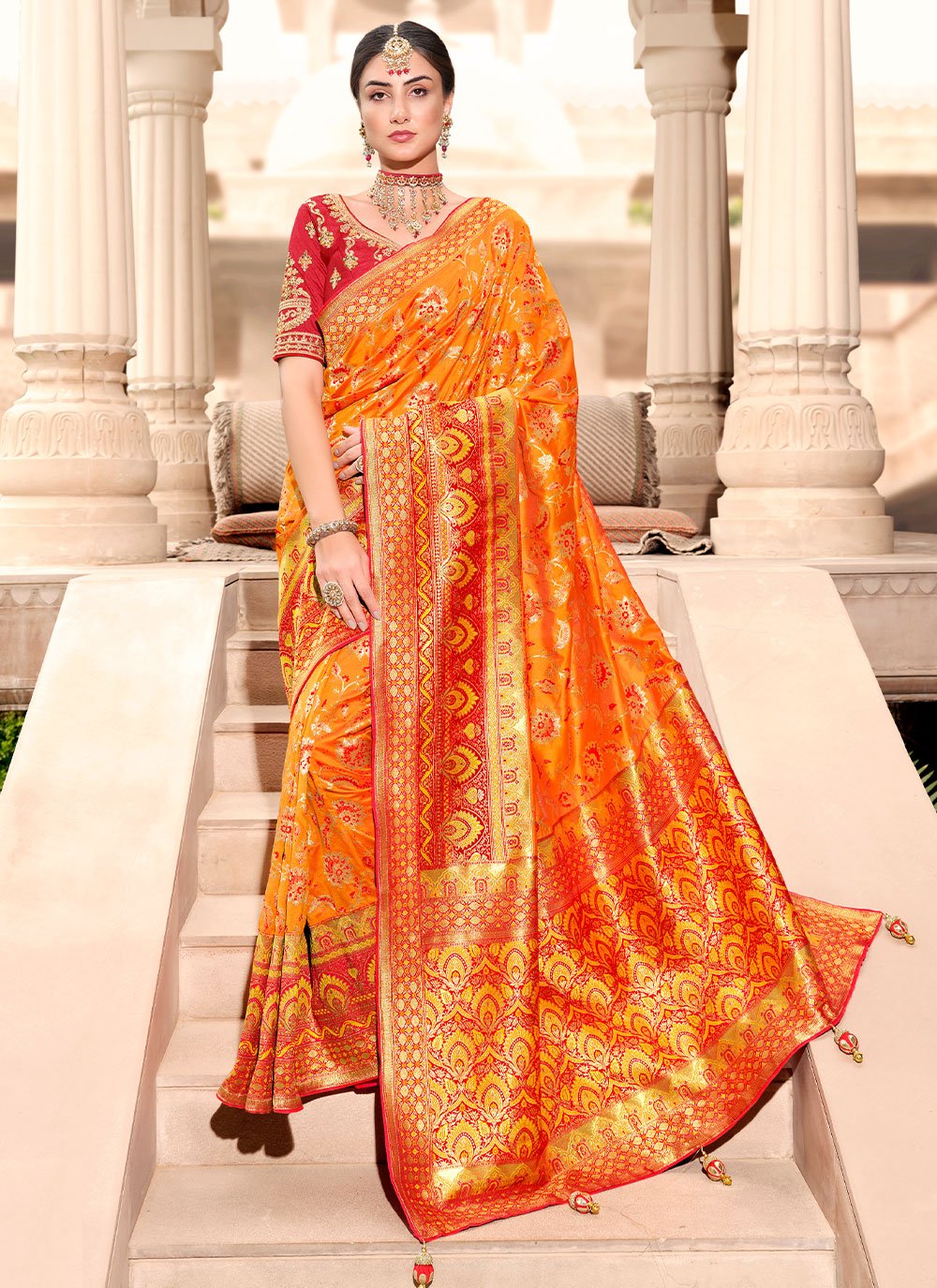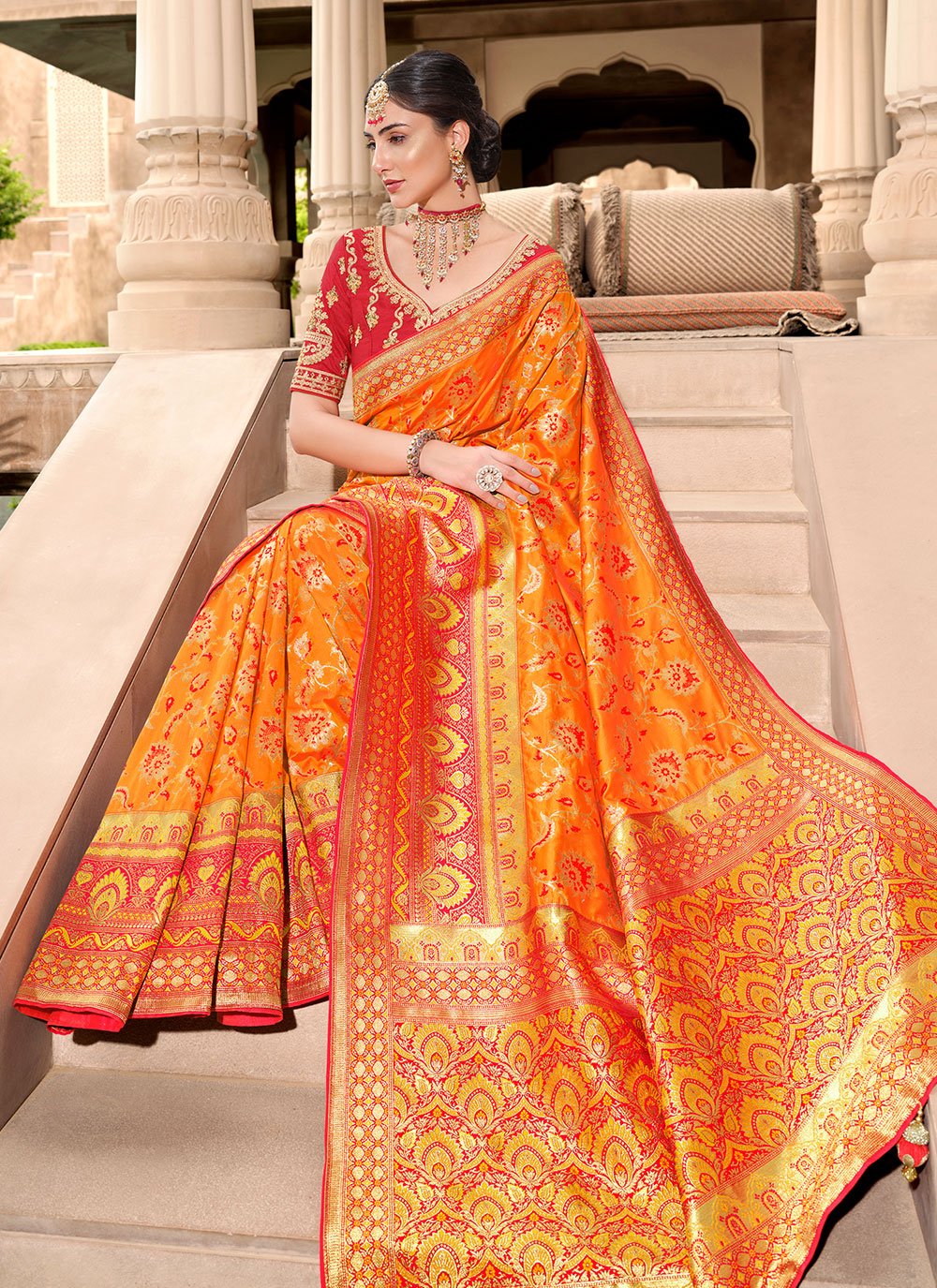 Designer Silk Orange Weaving Saree