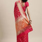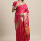 Designed with simplicity with a touch of soberness in its work makes a masterpiece. Be your diverse style and design diva with this pink silk designer saree. The amazing attire creates a dramatic canvas with amazing weaving work. Comes with matching blouse. (Slight variation in color, fabric & work is possible. Model images are only representative.)