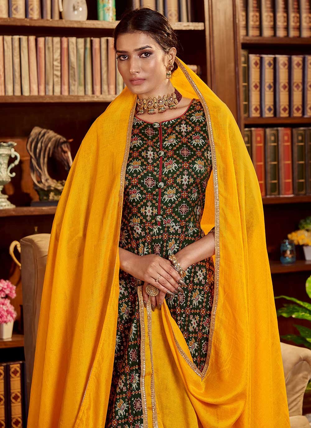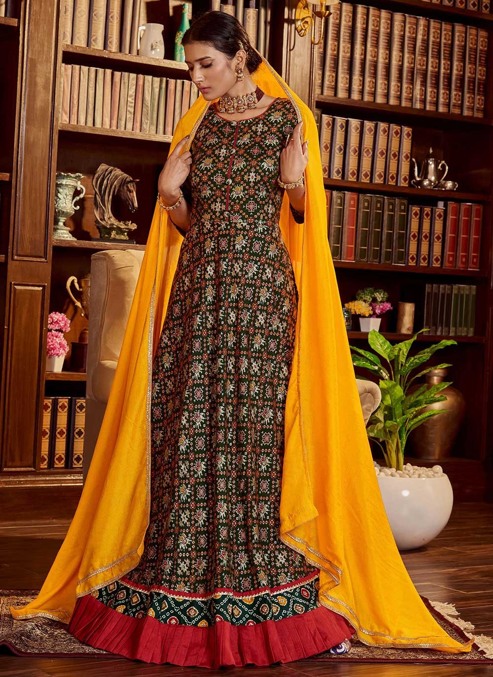 You are bound to make a impressive style statement with this prime green cotton gown . This beautiful attire is showing some superb embroidery done with printed work. (Slight variation in color, fabric & work is possible. Model images are only representative.)