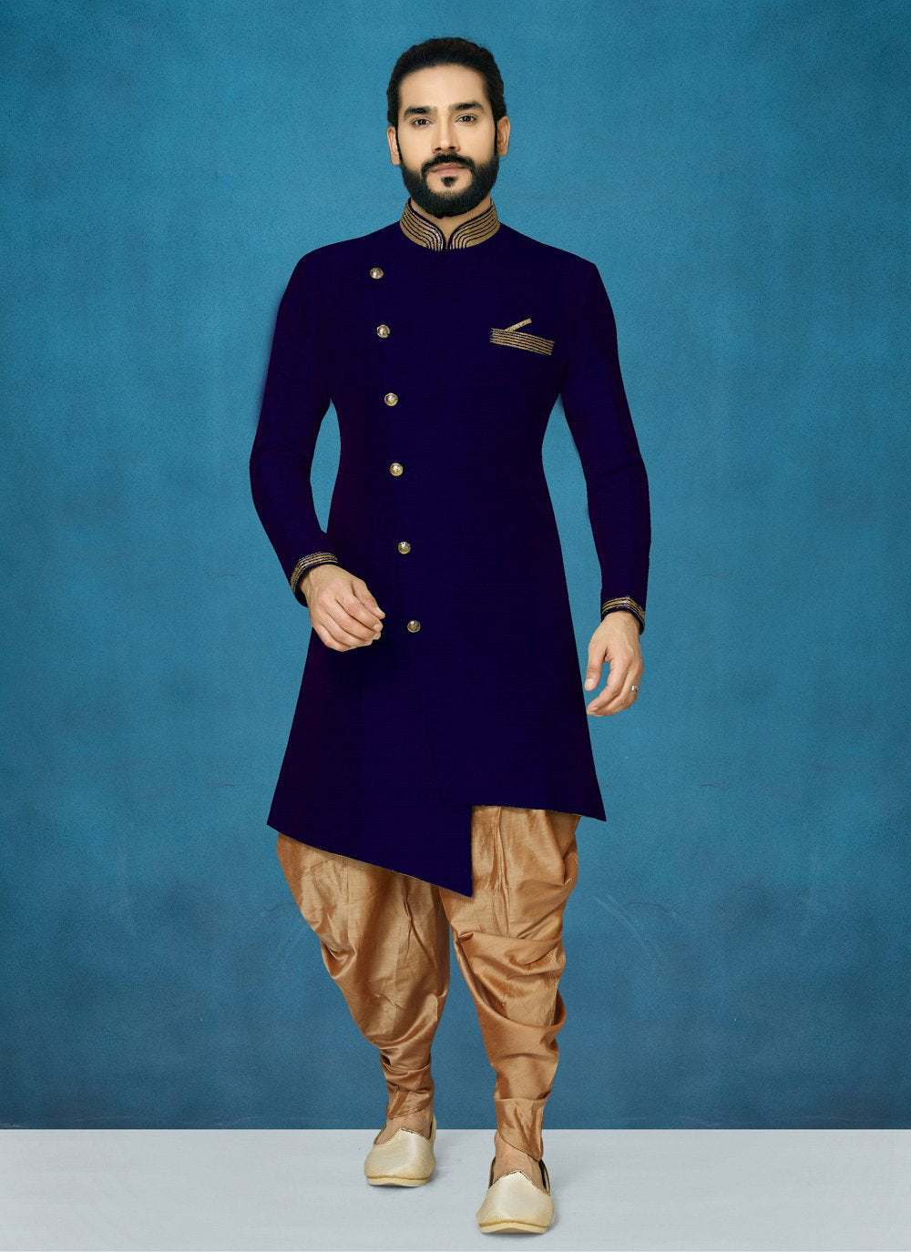 Indo Western Art Dupion Silk Blue Buttons Mens