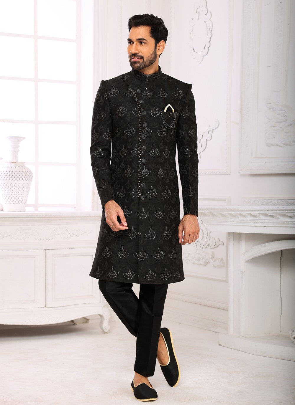 Indo Western Sherwani Imported Black Jacquard Work Mens