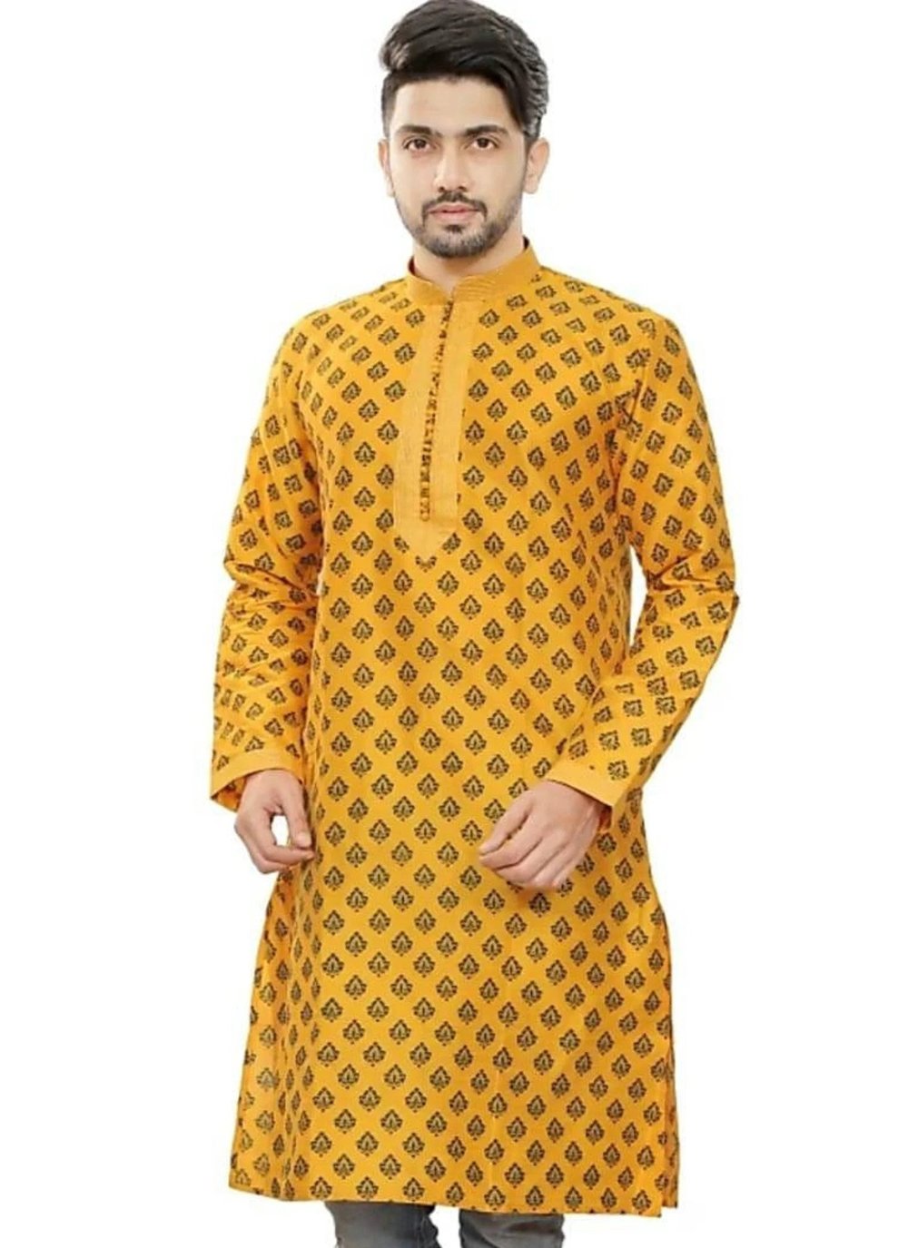 Kurta Art Dupion Silk Orange Embroidered Mens
