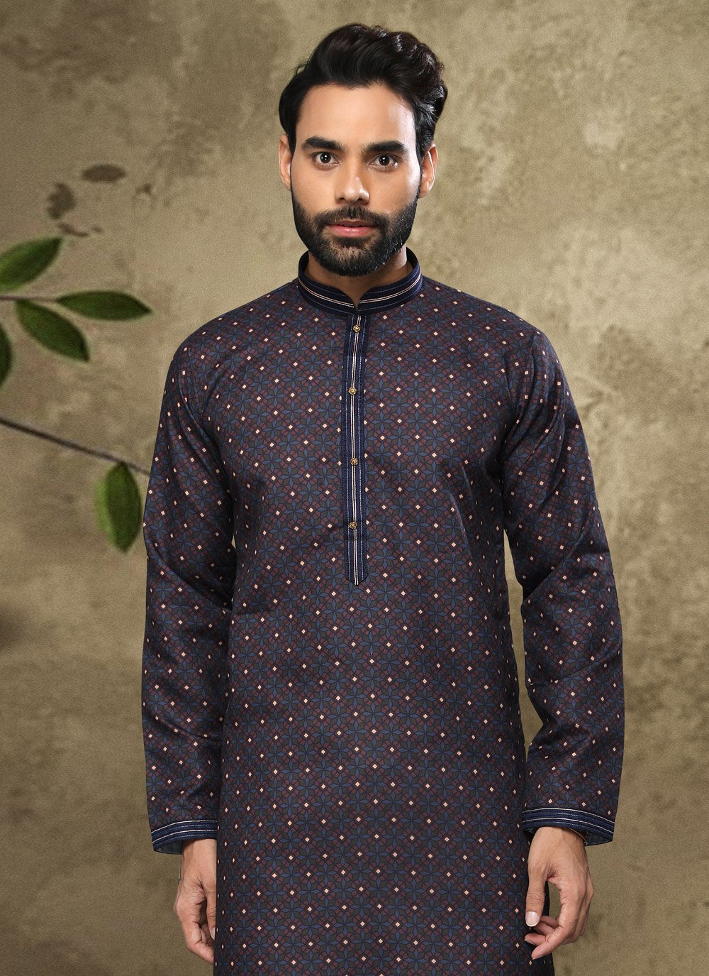 Kurta Pyjama Handloom Cotton Green Digital Print Mens