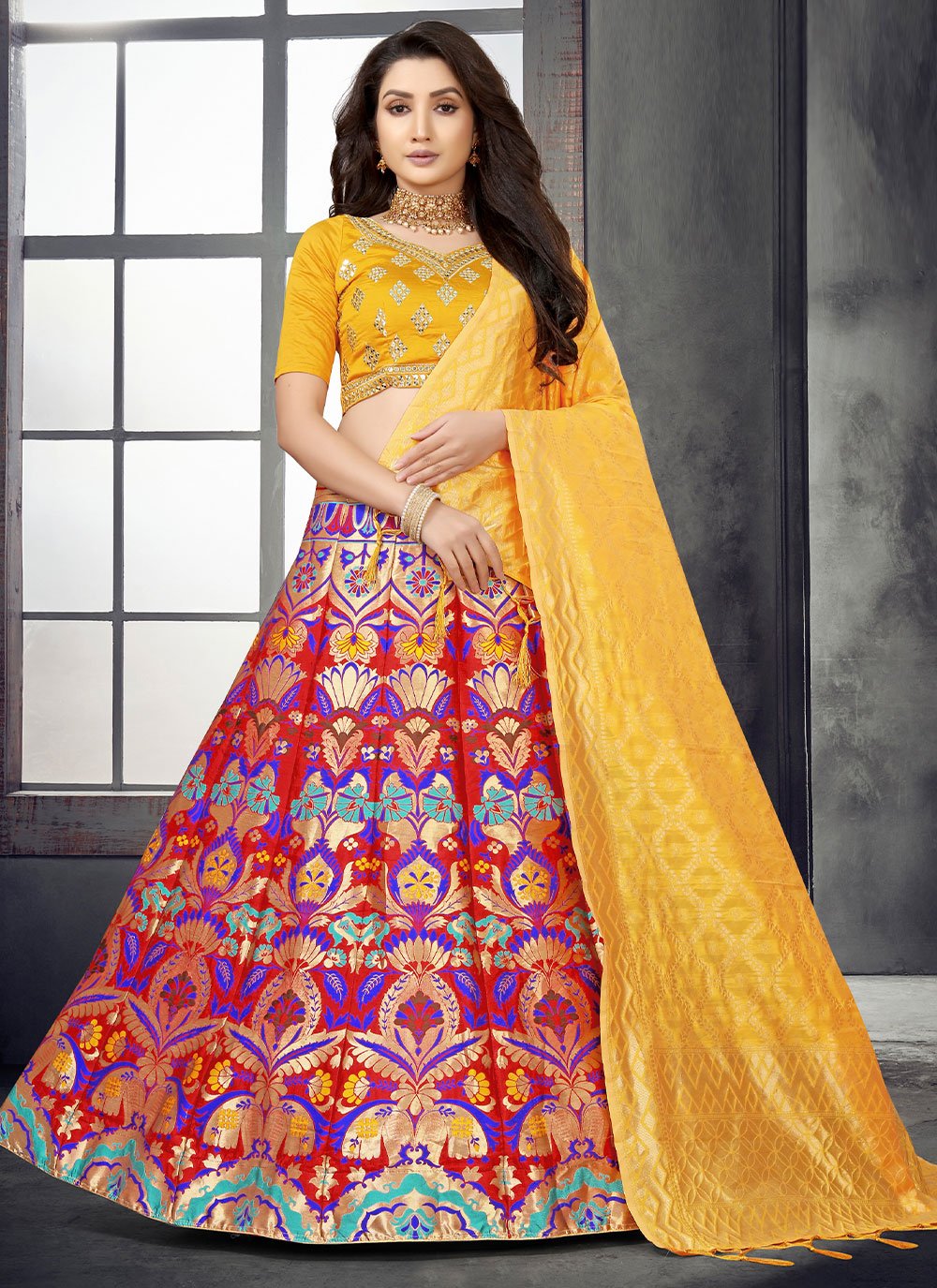 Lehenga Choli Banarasi Silk Red Mirror Lehenga Choli