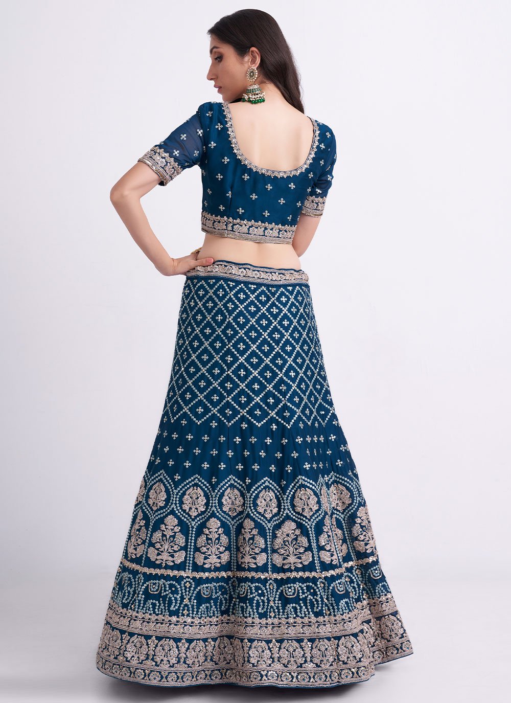 Lehenga Choli Georgette Blue Cord Work Lehenga Choli