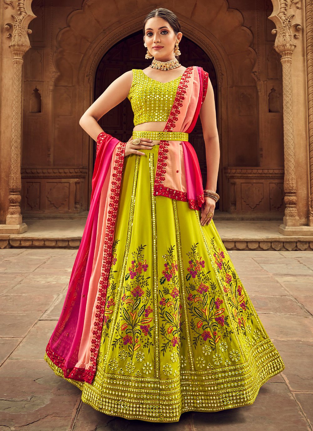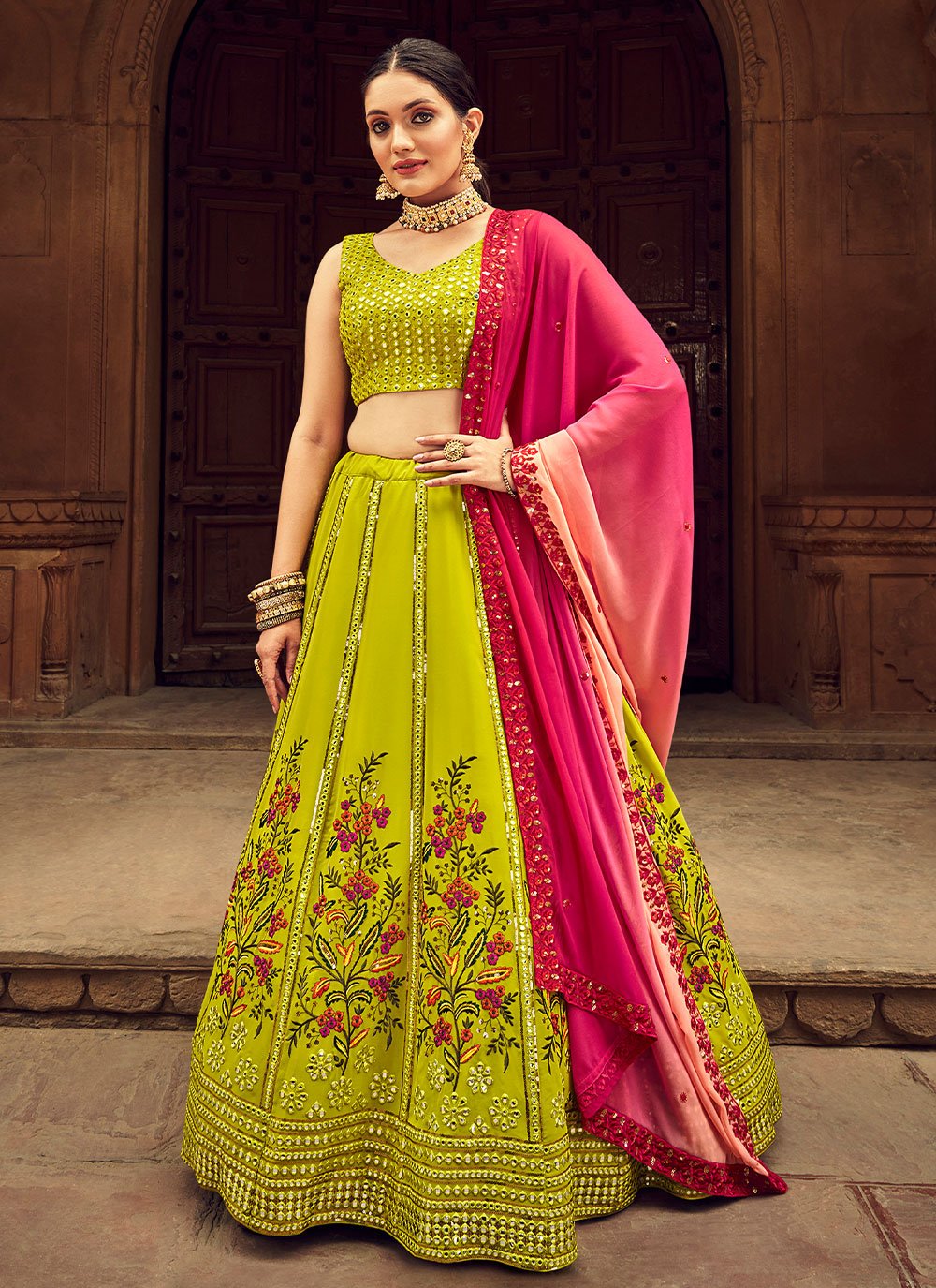 Lehenga Choli Georgette Green Embroidered Lehenga Choli