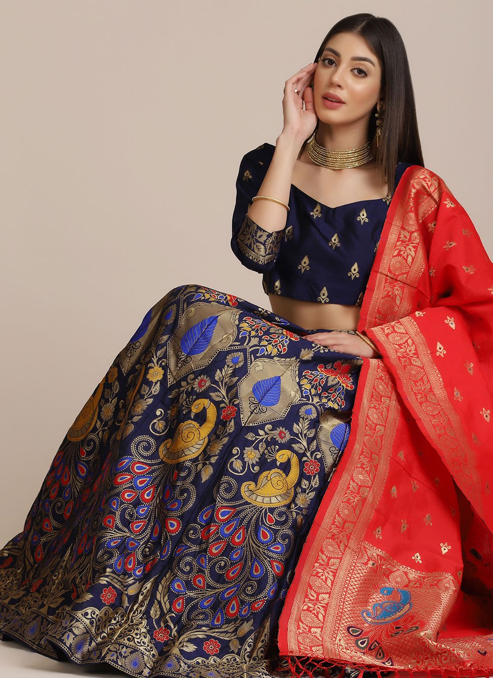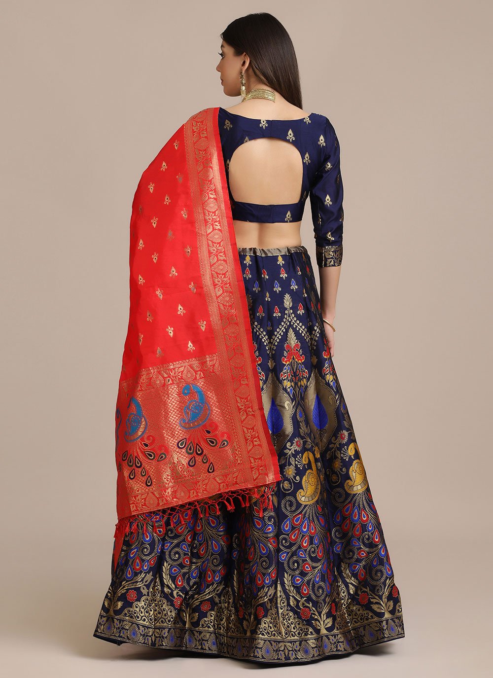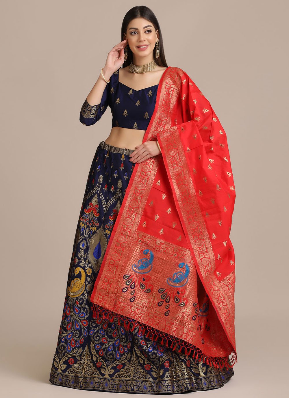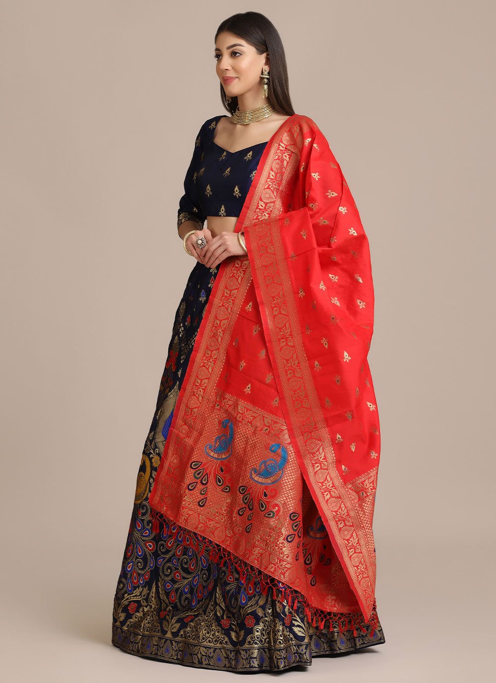 Lehenga Choli Jacquard Blue Woven Lehenga Choli