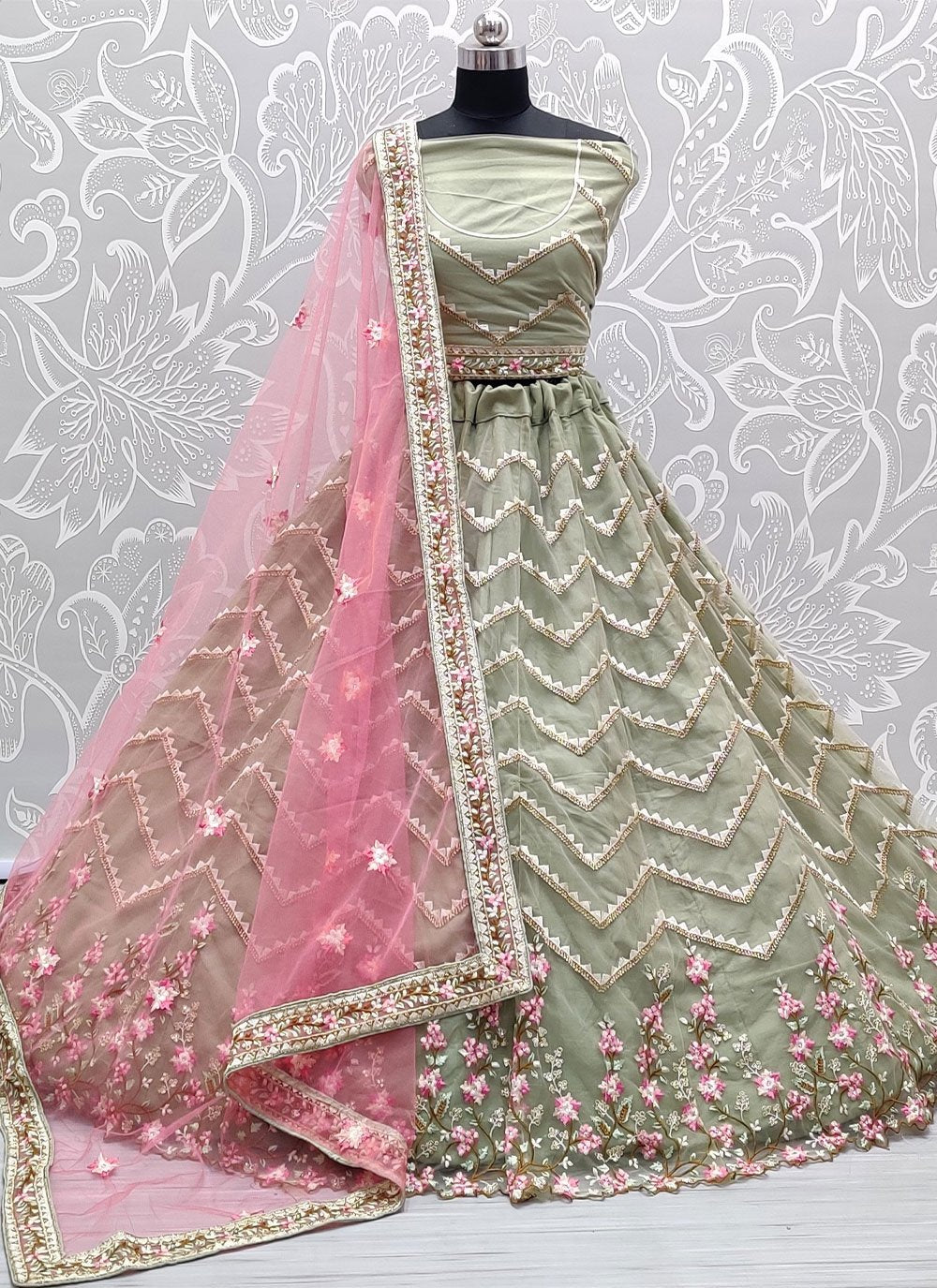 Lehenga Choli Net Green Diamond Lehenga Choli