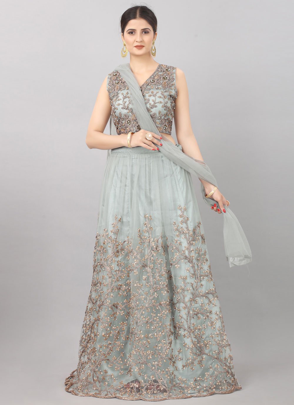 Lehenga Choli Net Grey Embroidered Lehenga Choli