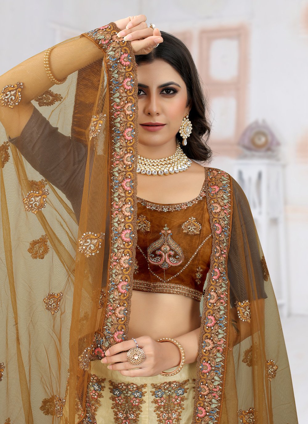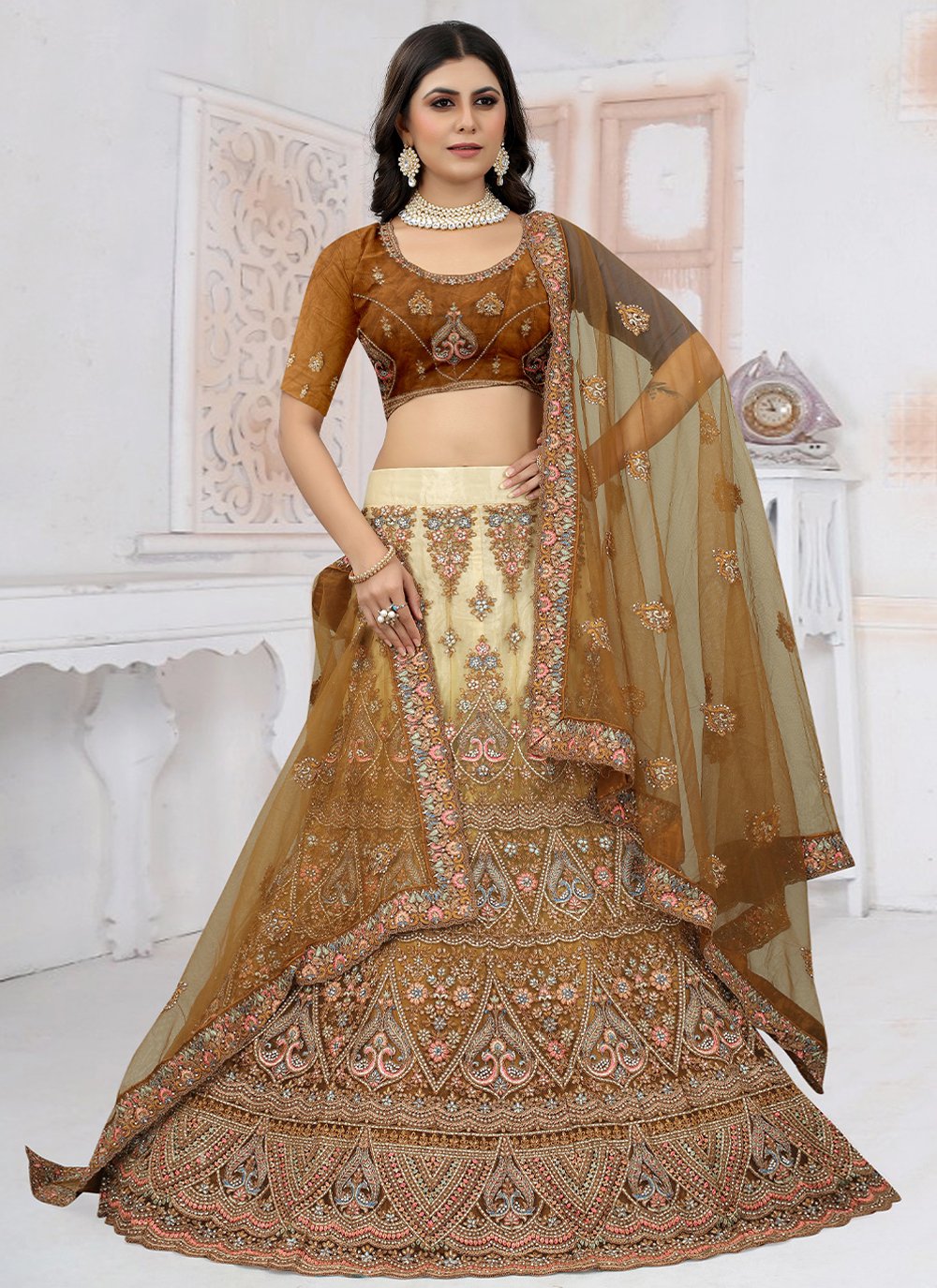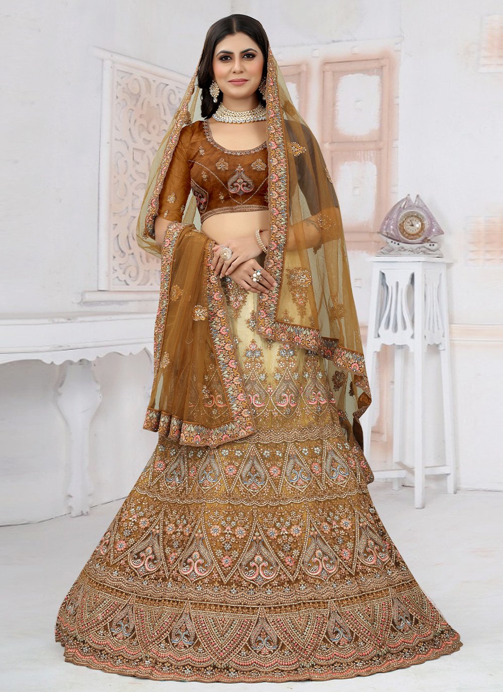 Lehenga Choli Net Mustard Embroidered Lehenga Choli