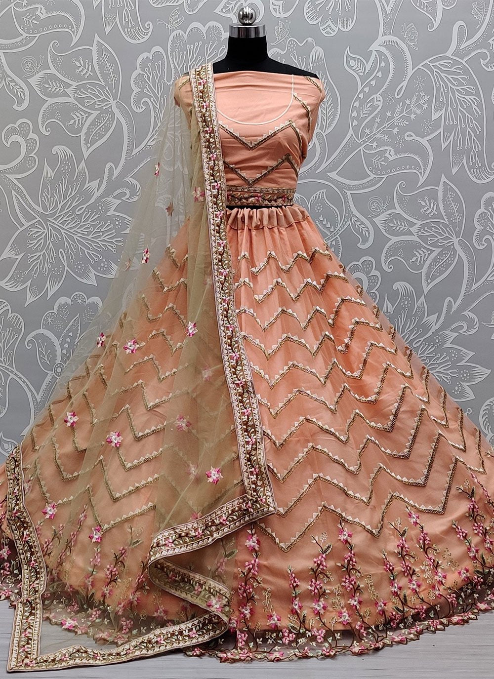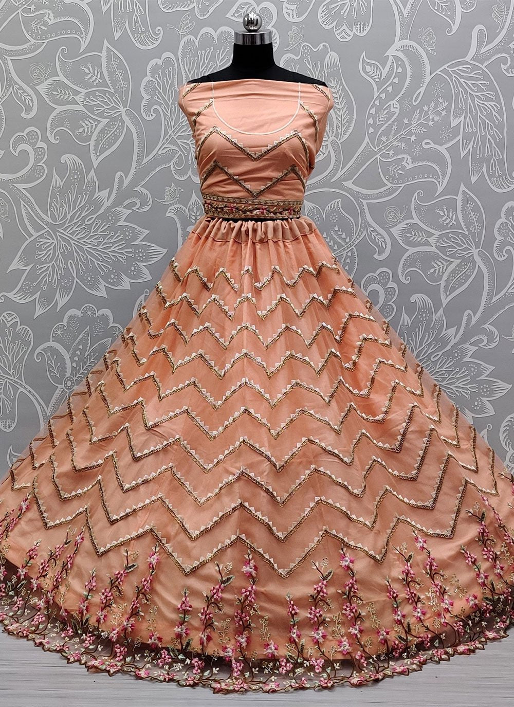 Lehenga Choli Net Peach Diamond Lehenga Choli