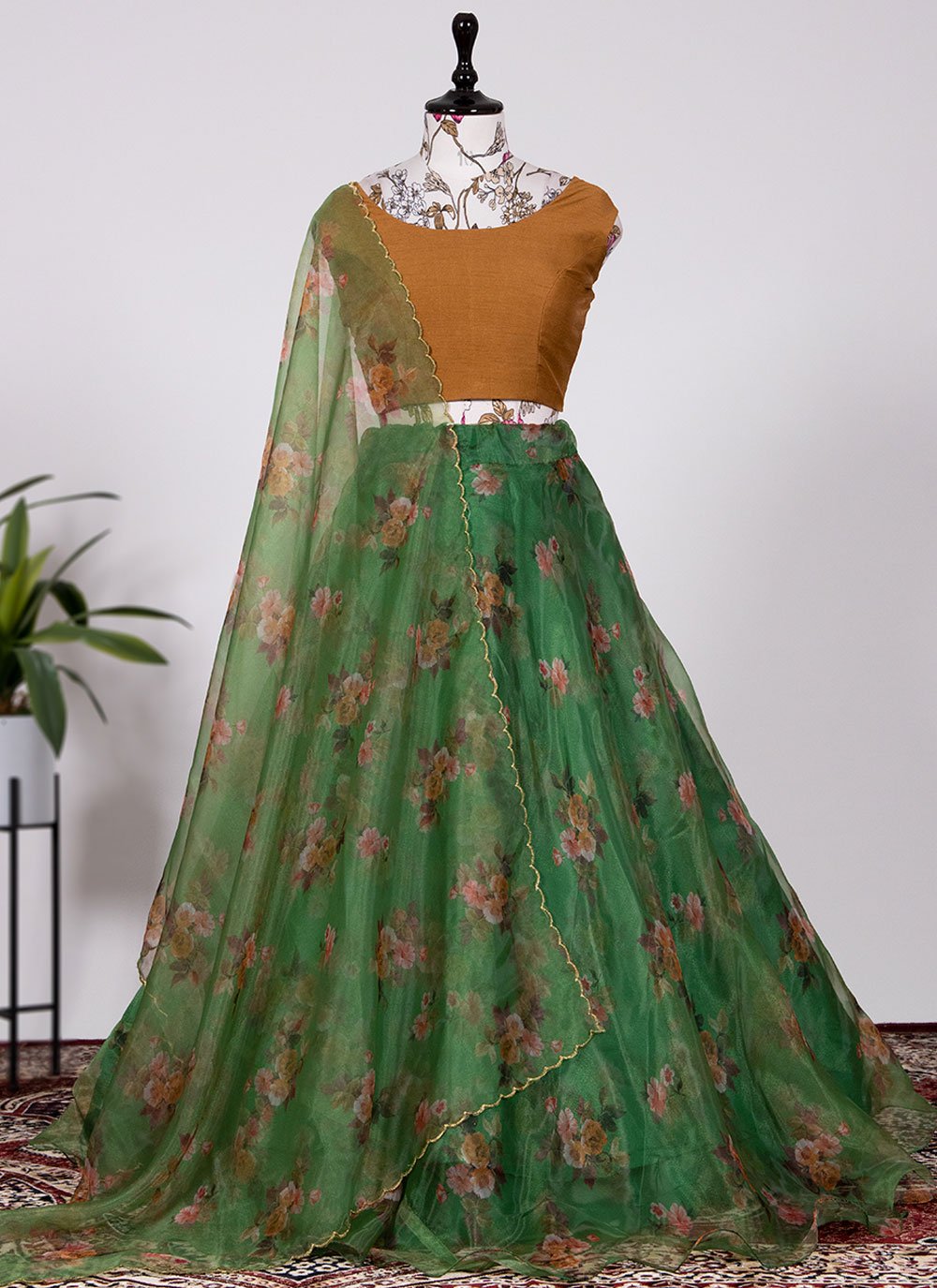 Lehenga Choli Organza Green Floral Patch Lehenga Choli