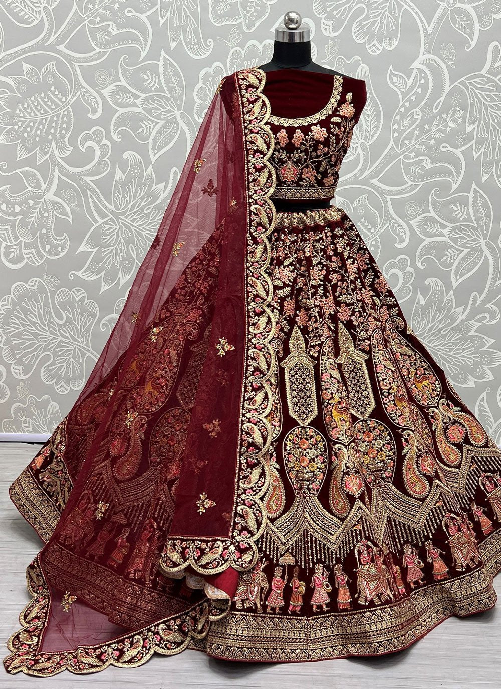 Lehenga Choli Velvet Maroon Diamond Lehenga Choli