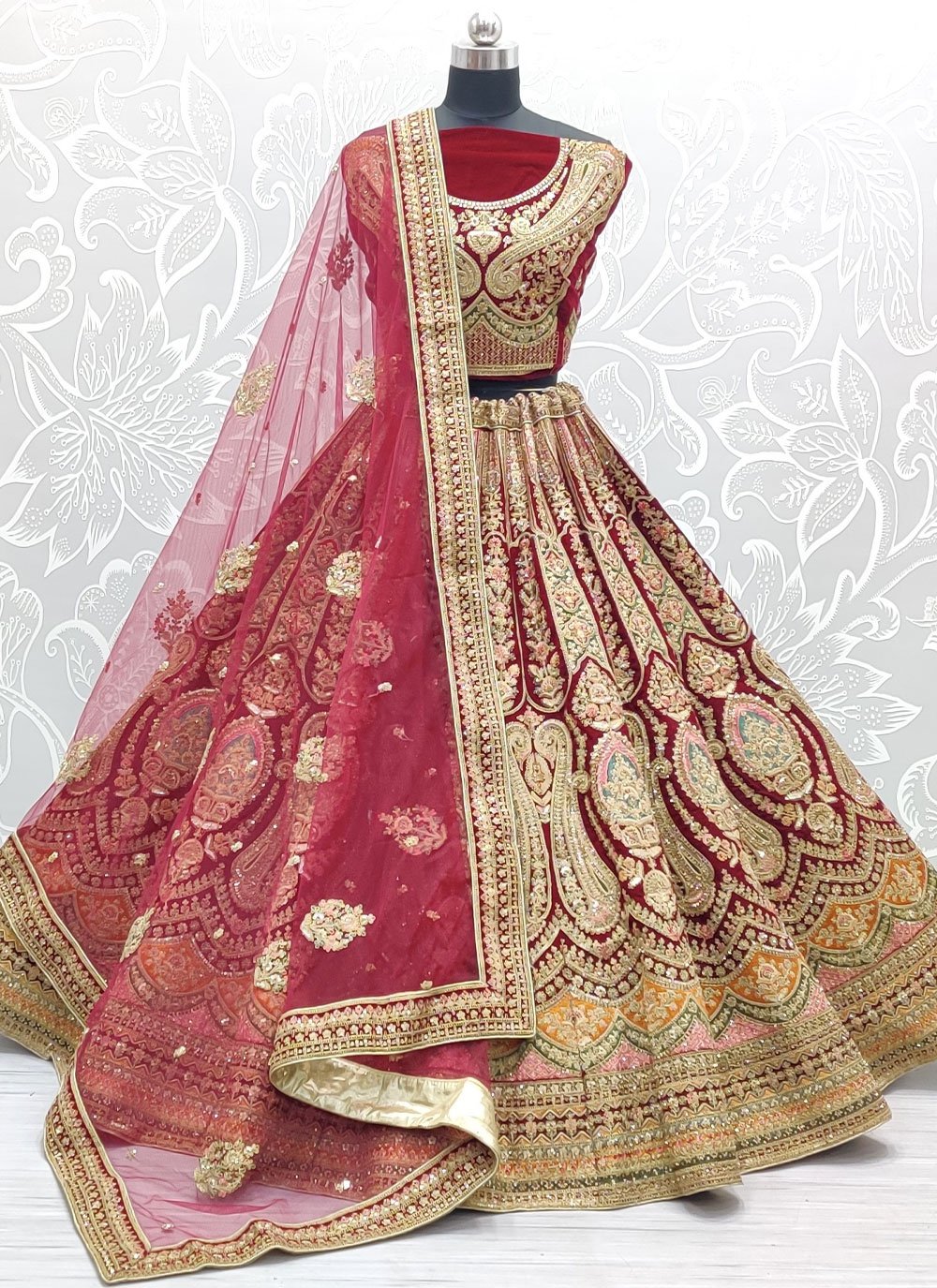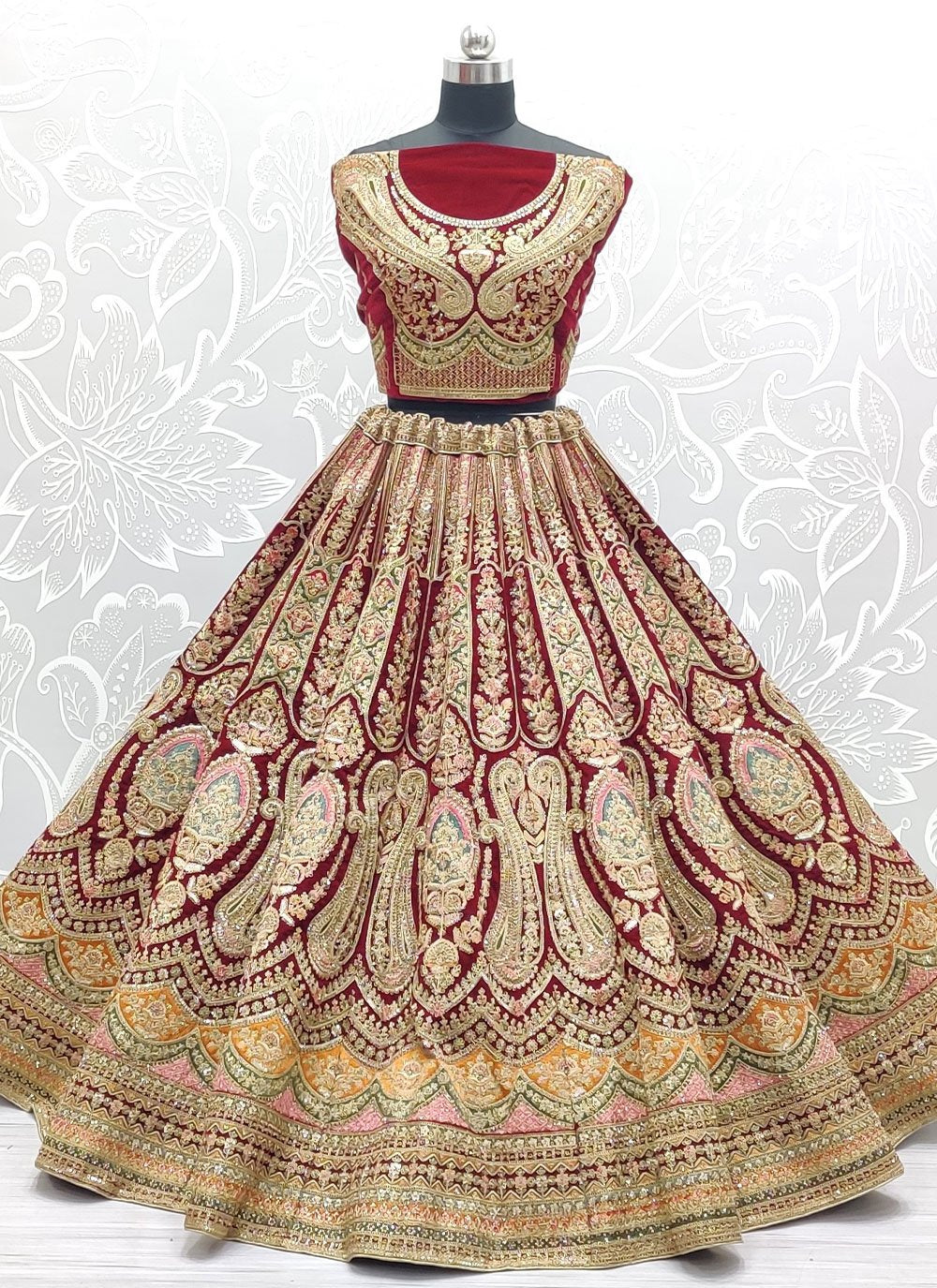 Lehenga Choli Velvet Maroon Diamond Lehenga Choli