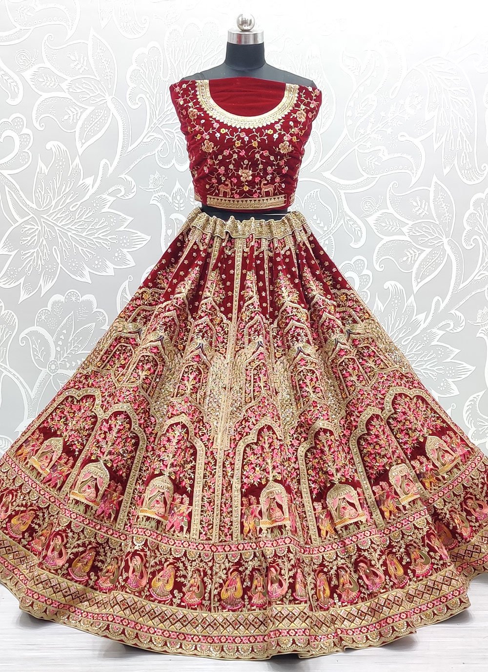 Lehenga Choli Velvet Maroon Sequins Lehenga Choli