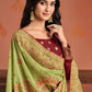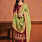 Pant Style Suit Jacquard Silk Maroon Swarovski Salwar Kameez