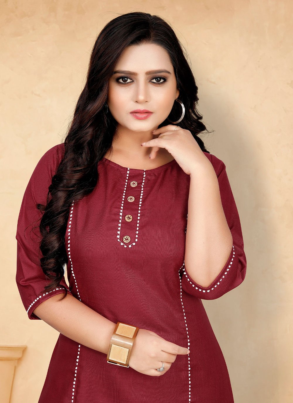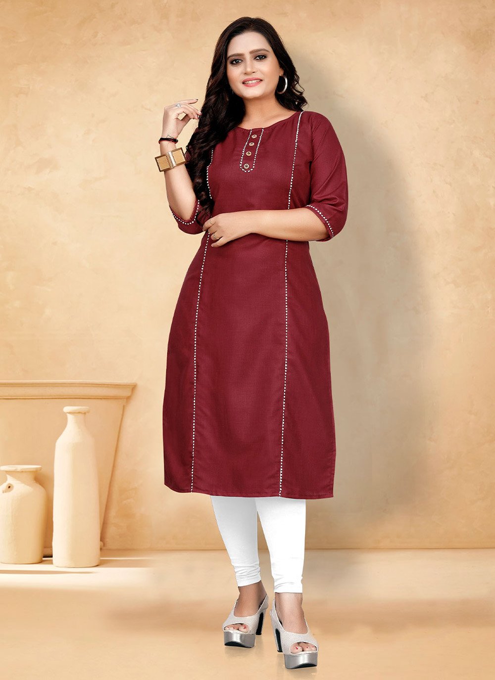Party Wear Kurti Cotton Maroon Plain Kurtis
