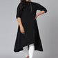 Keep ahead in fashion with this black faux crepe party wear kurti. The plain work appears to be chic and aspiration for festival and party. (Slight variation in color, fabric & work is possible. Model images are only representative.)