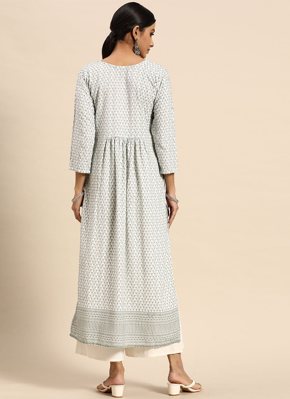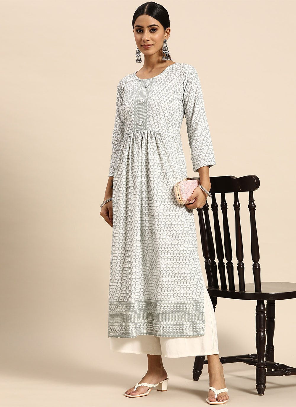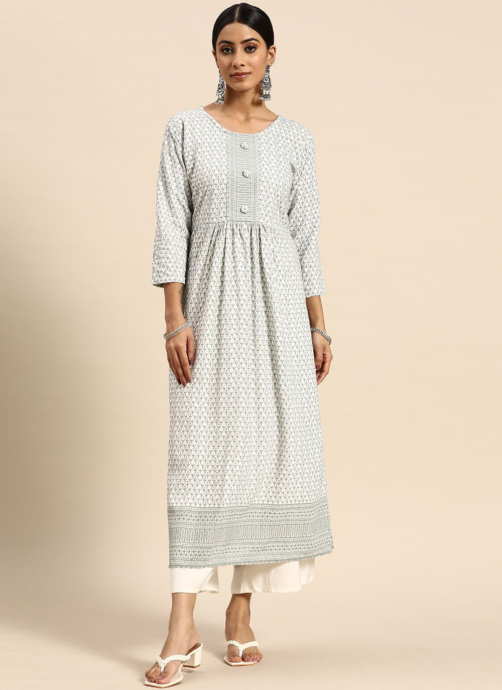 Party Wear Kurti Rayon Viscose Grey Embroidered Kurtis