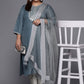 Party Wear Kurti Silk Grey Embroidered Kurtis