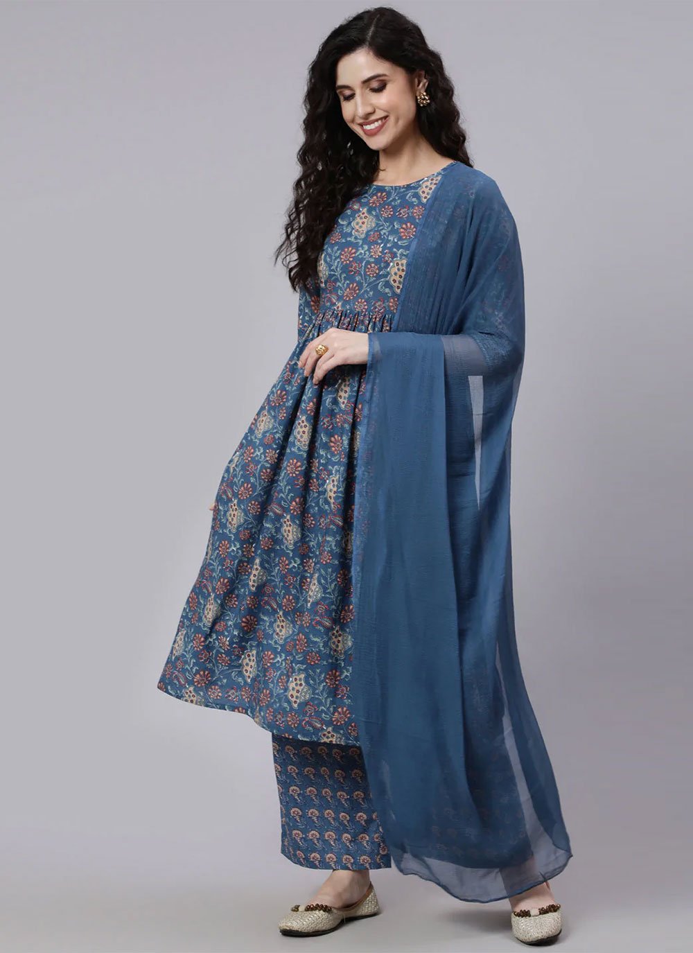 Salwar Suit Cotton Blue Print Salwar Kameez