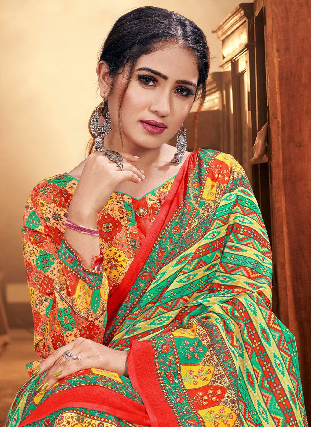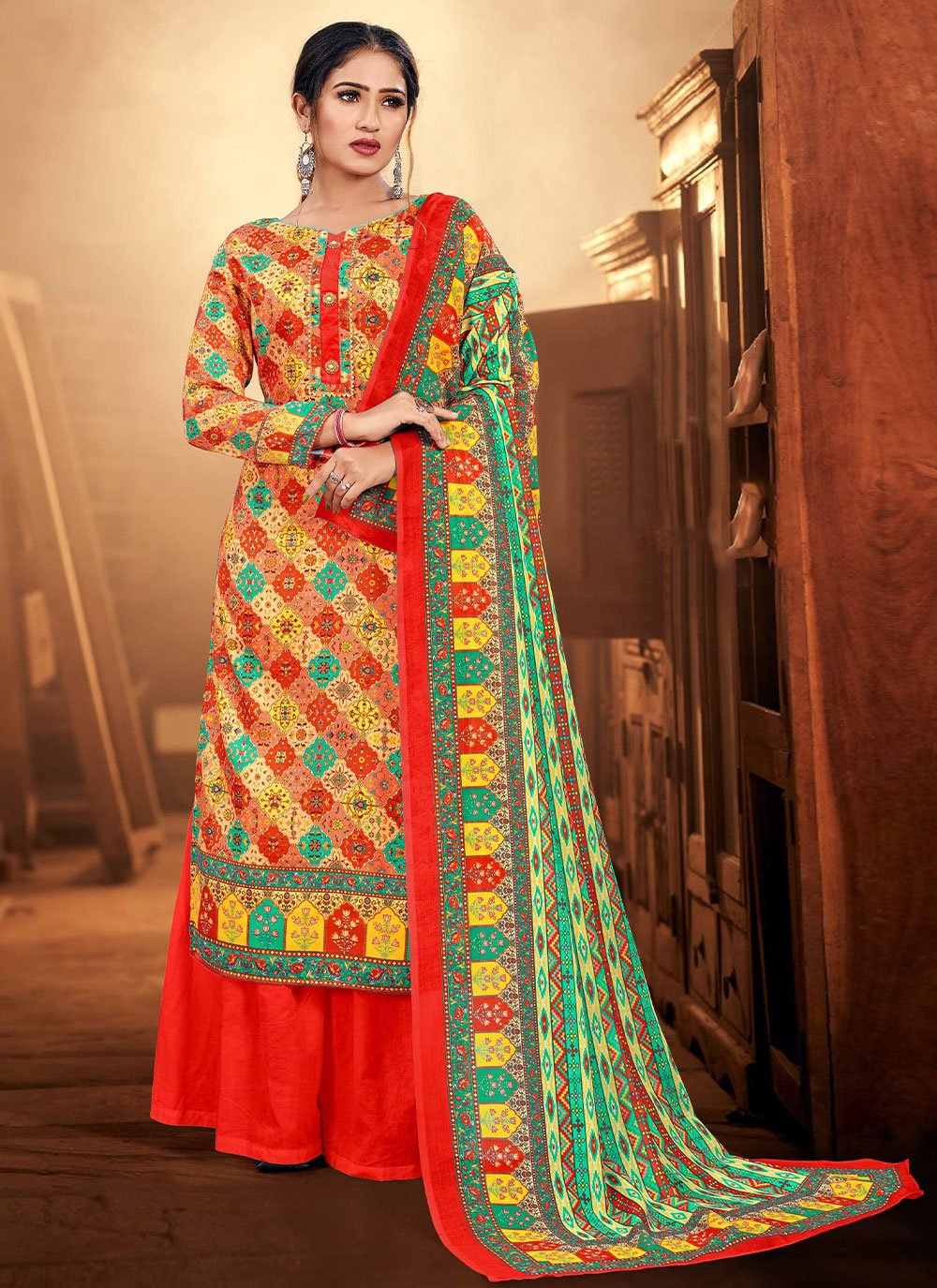 Attract compliments by this multi colour cotton salwar suit. This ravishing attire is amazingly embroidered with digital print and embroidered work. Comes with matching bottom and dupatta. (Slight variation in color, fabric & work is possible. Model images are only representative.) Maximum possible bust size: 42 inches.