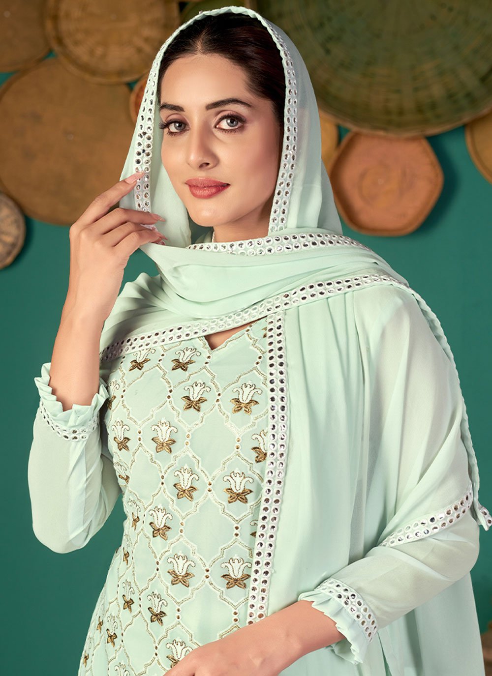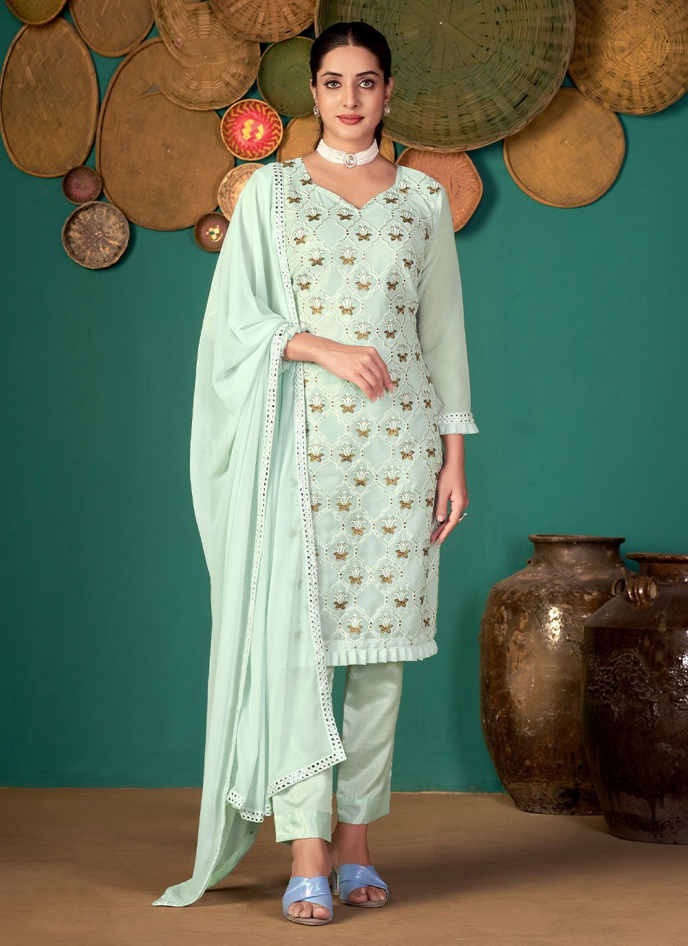 Salwar Suit Faux Georgette Green Embroidered Salwar Kameez