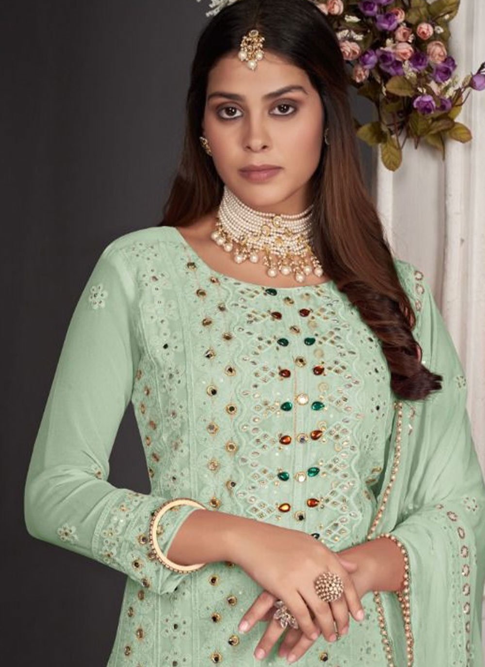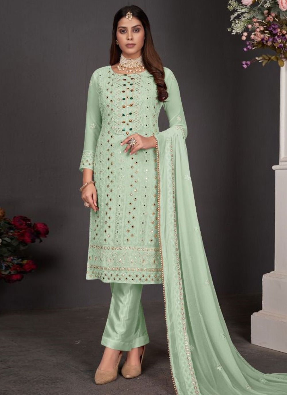 Salwar Suit Faux Georgette Sea Green Embroidered Salwar Kameez