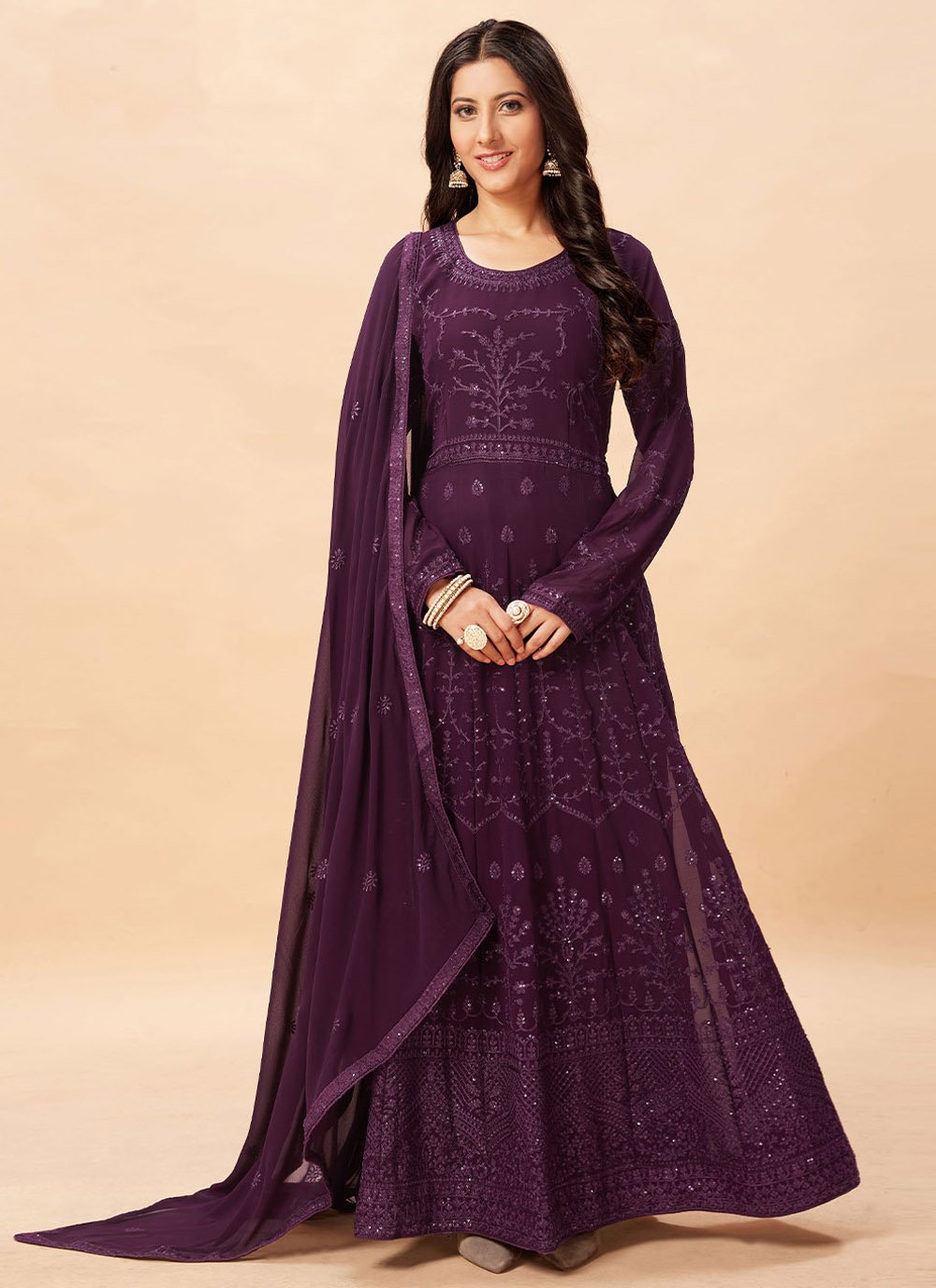 Salwar Suit Georgette Purple Embroidered Salwar Kameez