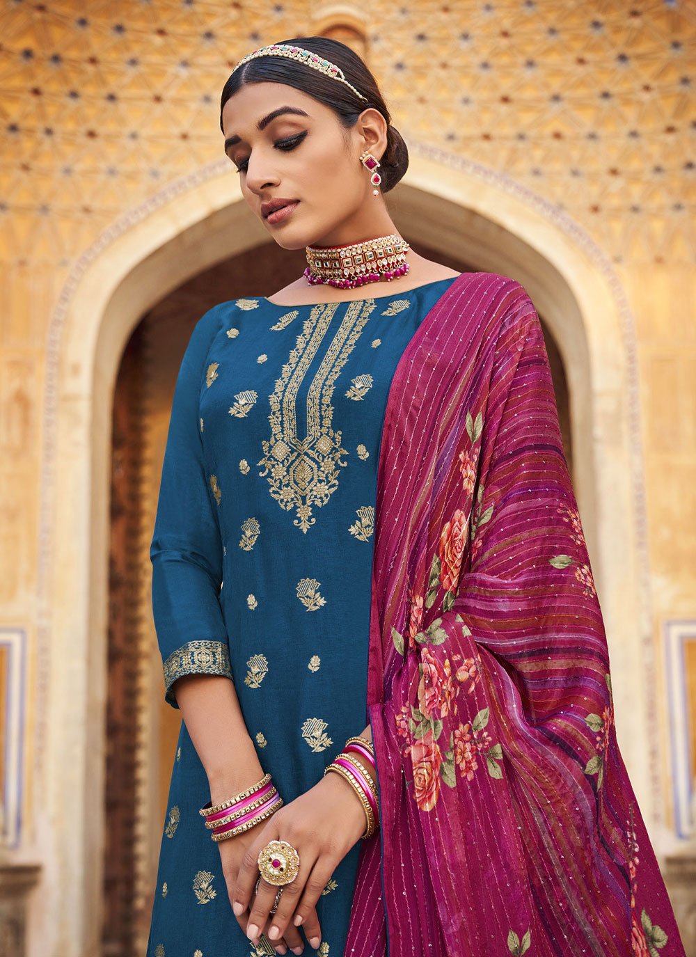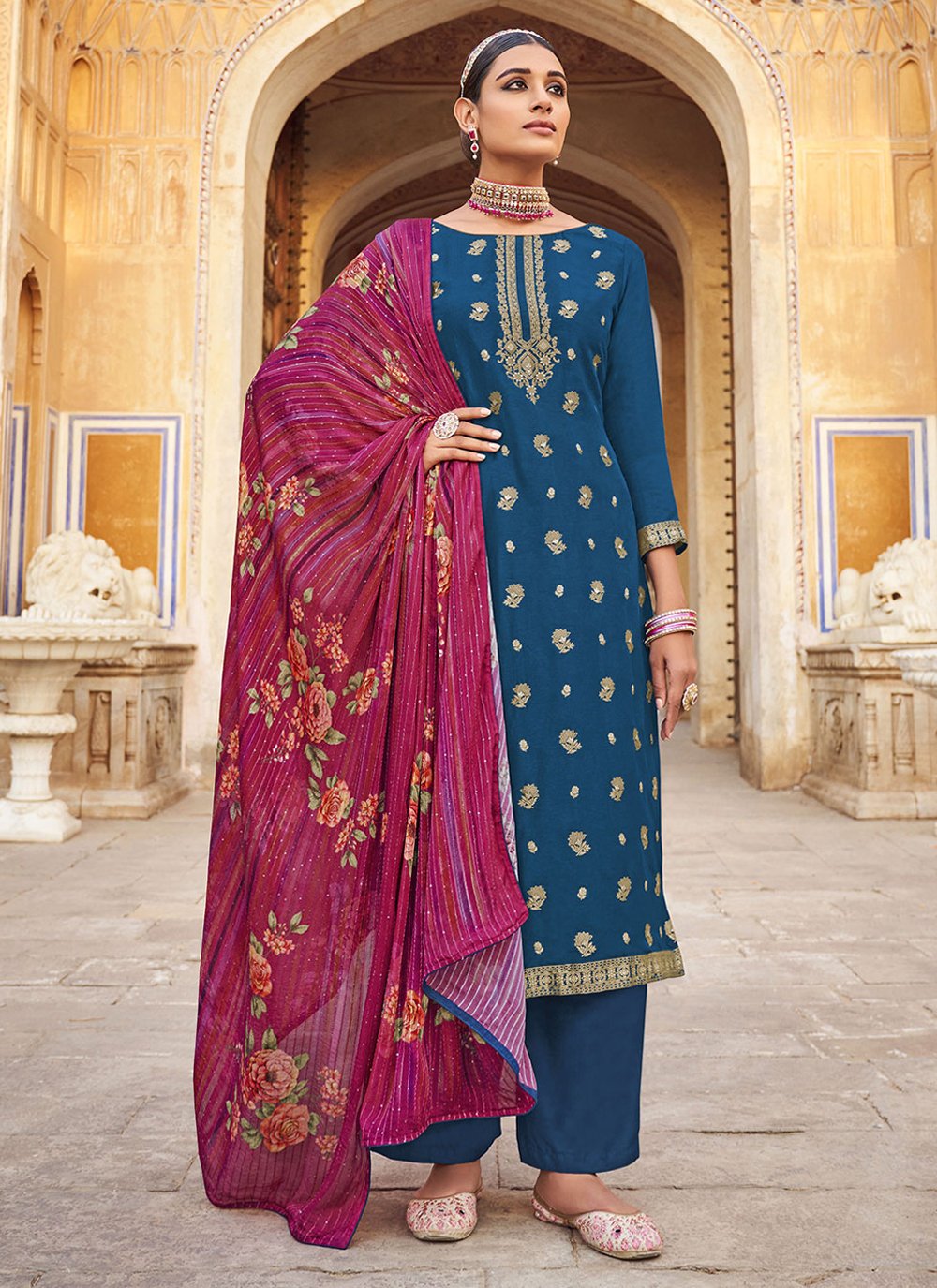 Salwar Suit Jacquard Pure Dola Morpeach Diamond Salwar Kameez