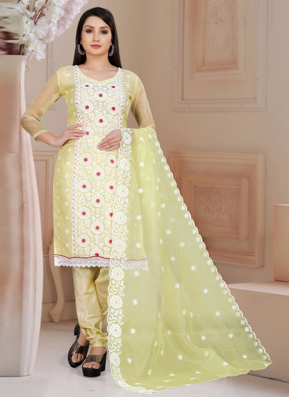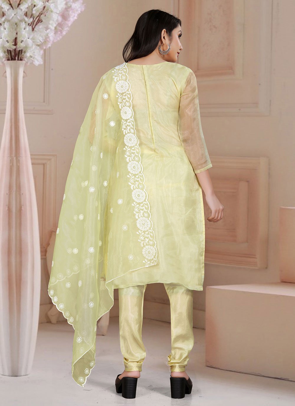 Salwar Suit Organza Yellow Embroidered Salwar Kameez