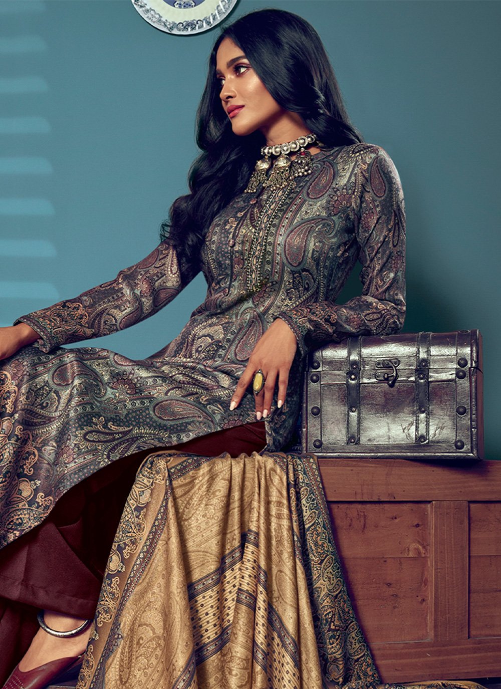 Salwar Suit Pashmina Multi Colour Digital Print Salwar Kameez