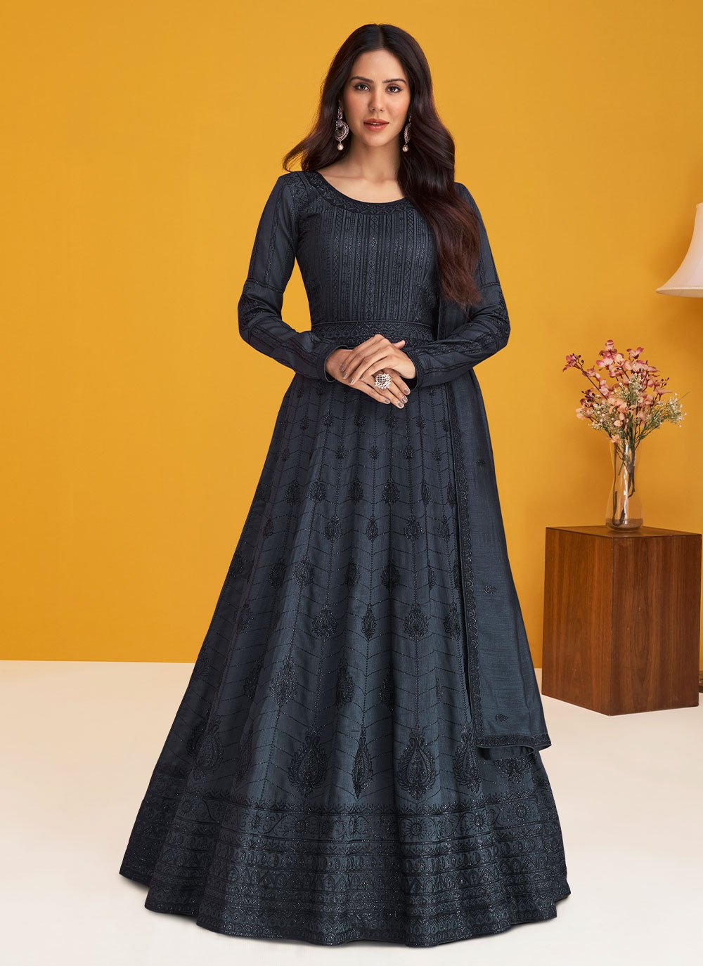 Salwar Suit Silk Blue Embroidered Salwar Kameez