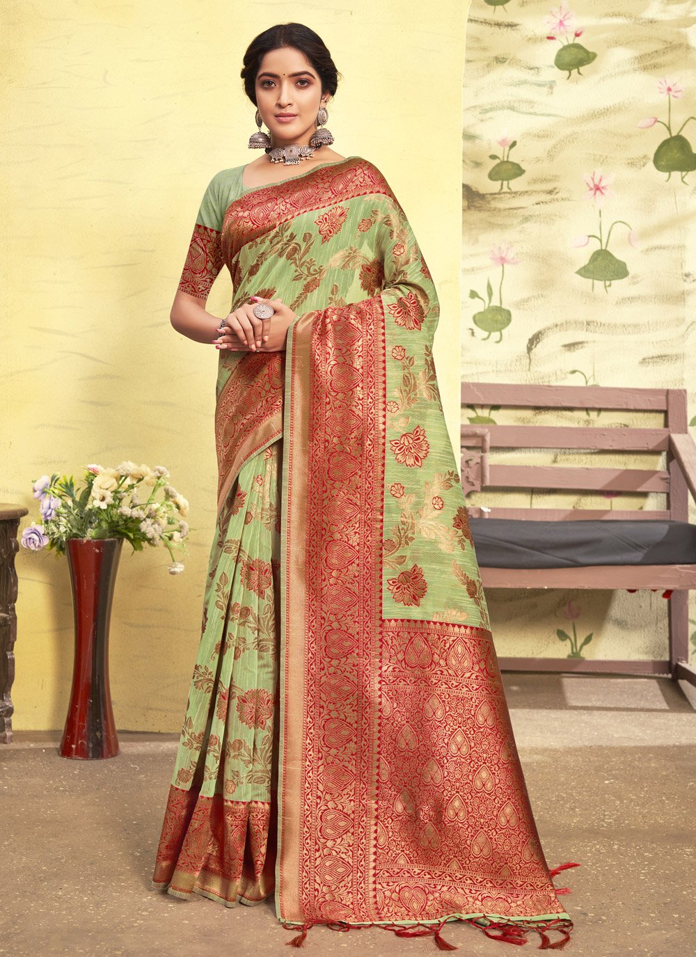 Traditional Saree Cotton Green Zari Saree