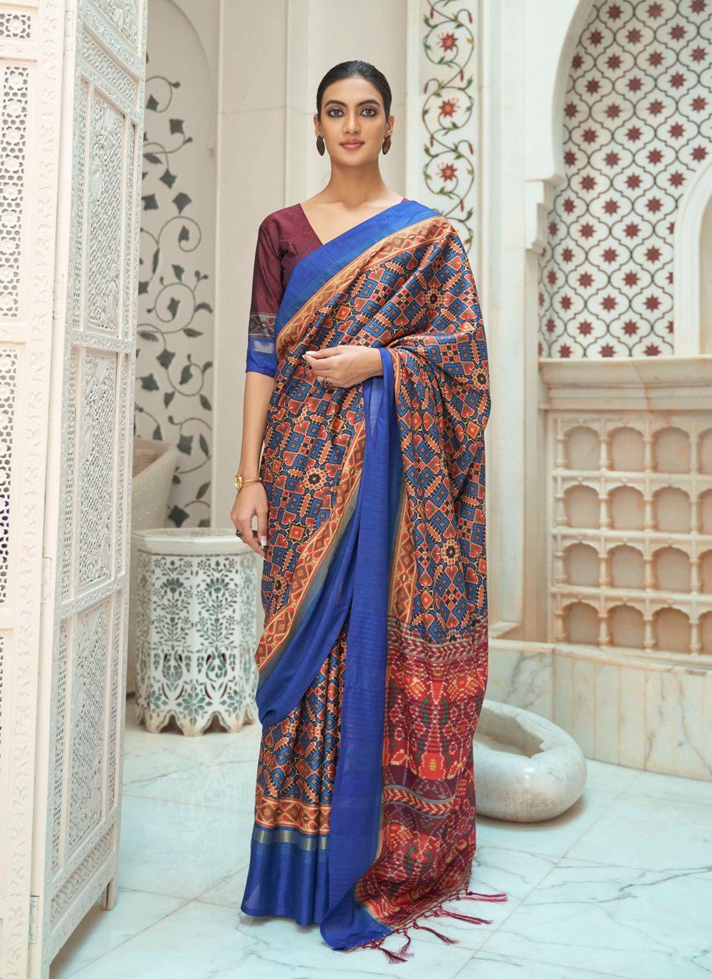 Designed with simplicity with a touch of soberness in its work makes a masterpiece. Create a smoldering impression by this blue patola silk traditional saree. The brilliant dress creates a dramatic canvas with remarkable weaving work. Comes with matching blouse. (Slight variation in color, fabric & work is possible. Model images are only representative.)