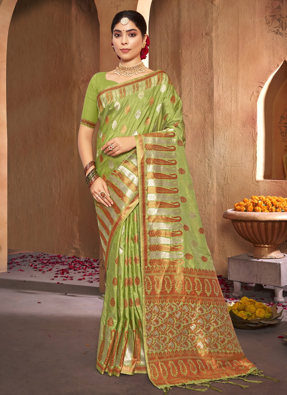 Traditional Saree Silk Green Weaving Saree