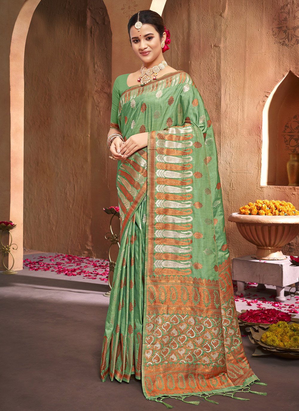 Traditional Saree Silk Green Weaving Saree