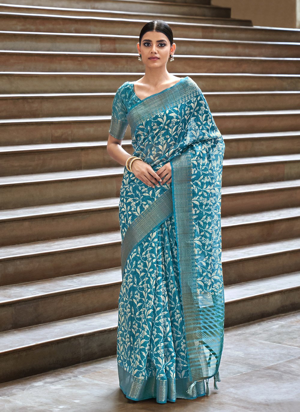 Enchant the mantra of being stylish in this attire. Keep ahead in fashion with this rama silk designer traditional saree. The brilliant attire creates a dramatic canvas with amazing digital print and sequins work. Comes with matching blouse. (Slight variation in color, fabric & work is possible. Model images are only representative.)