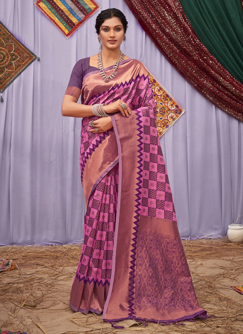 You will be the center of attention in this attire. Add a small burst of colour to the wardrobe with this pink and purple cotton trendy saree. The checks and fancy work appears chic and fantastic for any affair. Comes with matching blouse. (Slight variation in color, fabric & work is possible. Model images are only representative.)