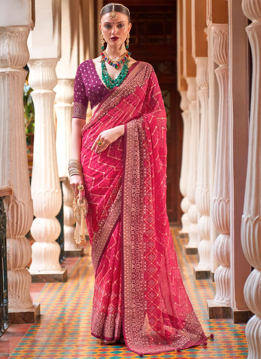Trendy Saree Georgette Hot Pink Patch Border Saree