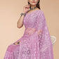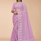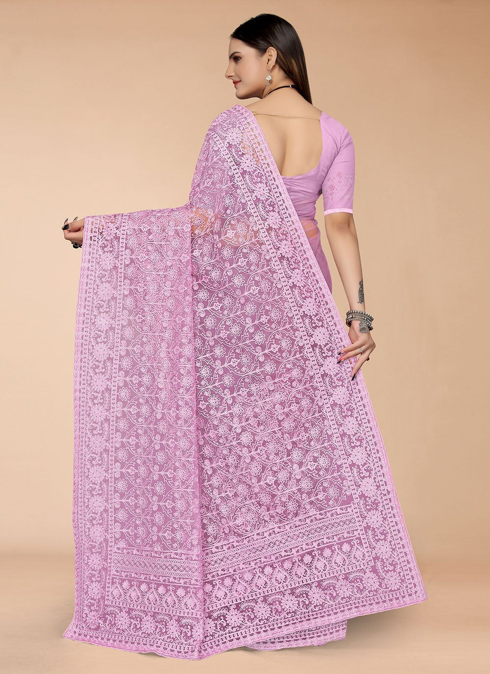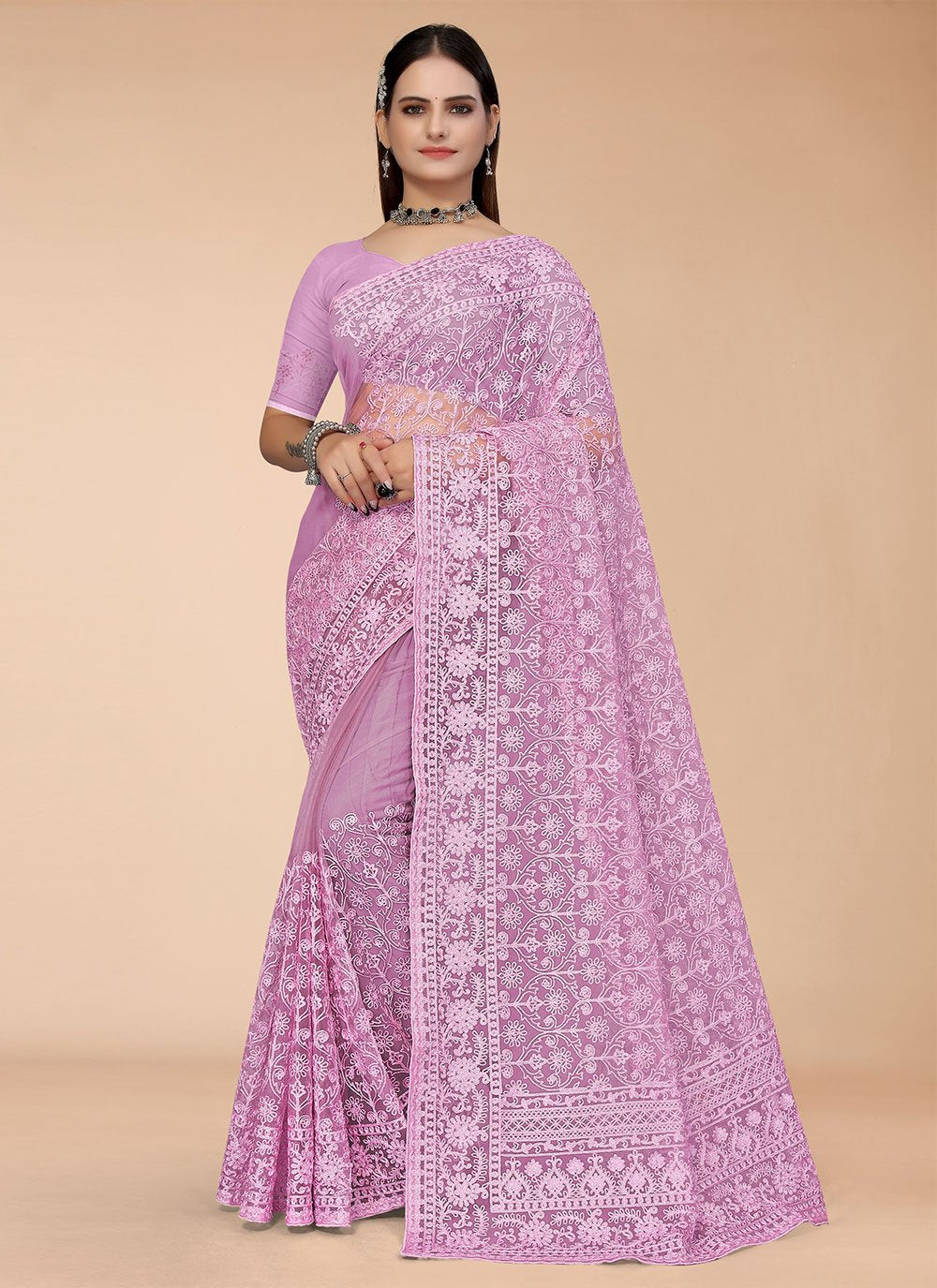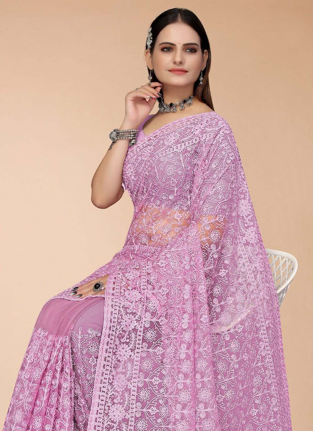 Make the heads flip whenever you costume up in this kind of a lovely purple net trendy saree. The incredible attire creates a dramatic canvas with astounding embroidered work. Comes with matching blouse. (Slight variation in color, fabric & work is possible. Model images are only representative.)